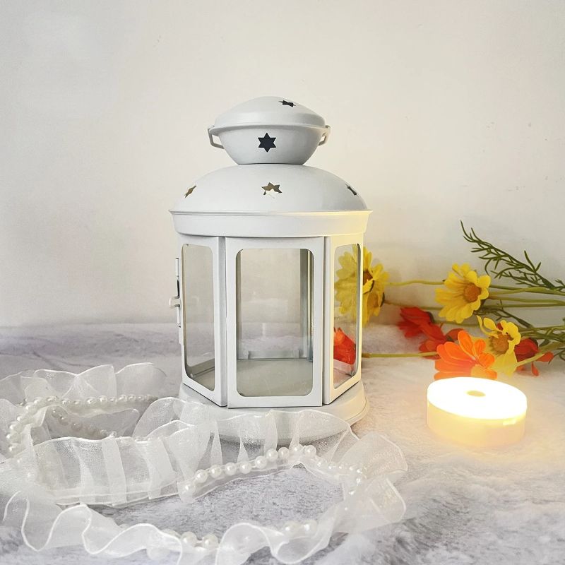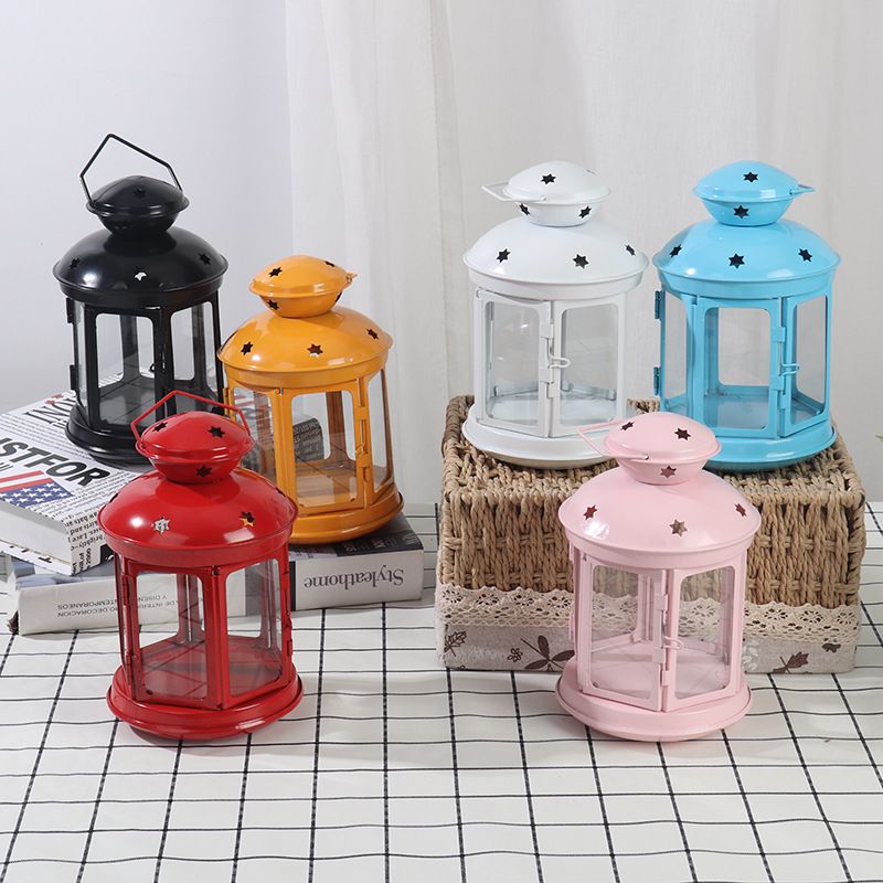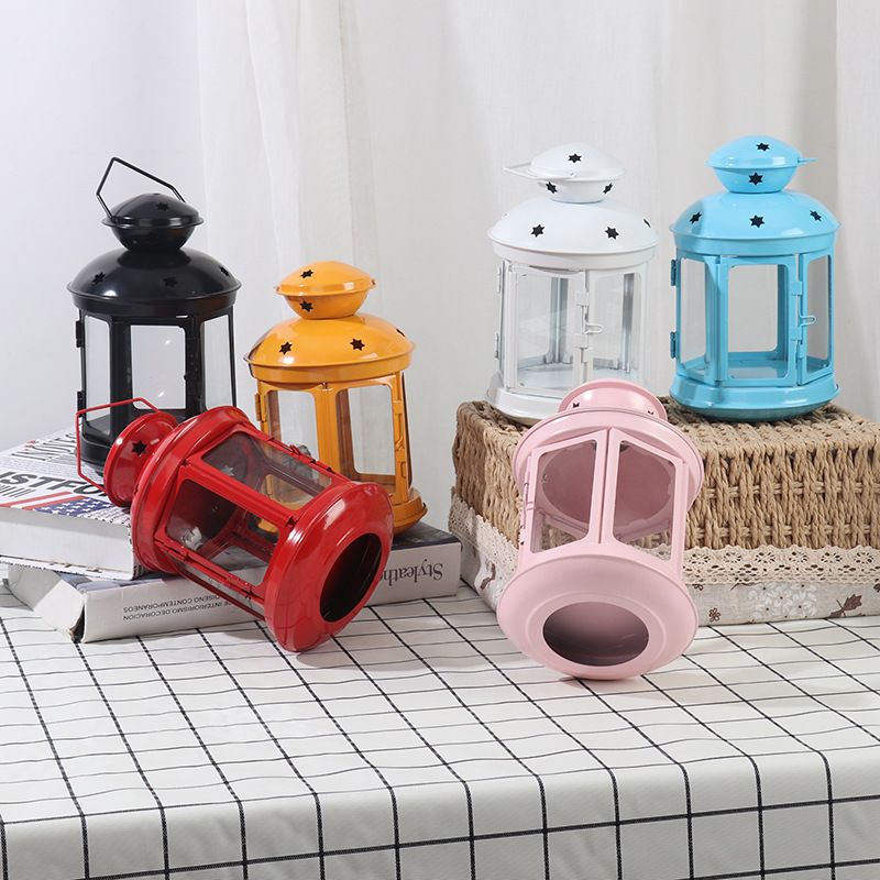 Iron Candle Holder European Candlestick Iron Star Pendant Lantern Candle Holder Vintage French Moroccan Home Bedroom Party Decor