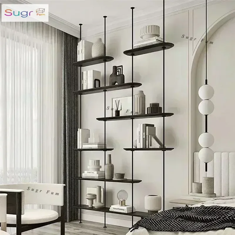 Iron Ladder Shelves Bookcase Floor Standing Black Metal Frame with Wooden Shelf ,The Height Can Be Adjusted By 2-3cm.