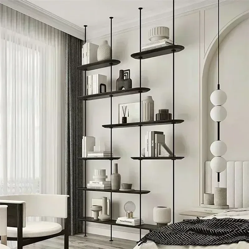 Iron Ladder Shelves Bookcase Floor Standing Black Metal Frame with Wooden Shelf ,The Height Can Be Adjusted By 2-3cm.