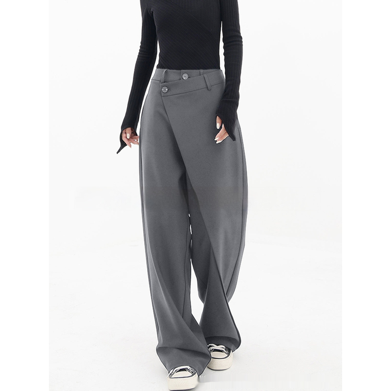 Irregular Wide-leg Pants Ins Fashion Loose Trousers Women's Clothing Gray 2 L