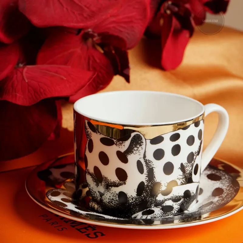 Italian Ceramics Mugs Vintage Teaware Sets Coffee Cup Saucer Set with Plate 350ml Cupa for Office Flower Tea Light Luxury Gift