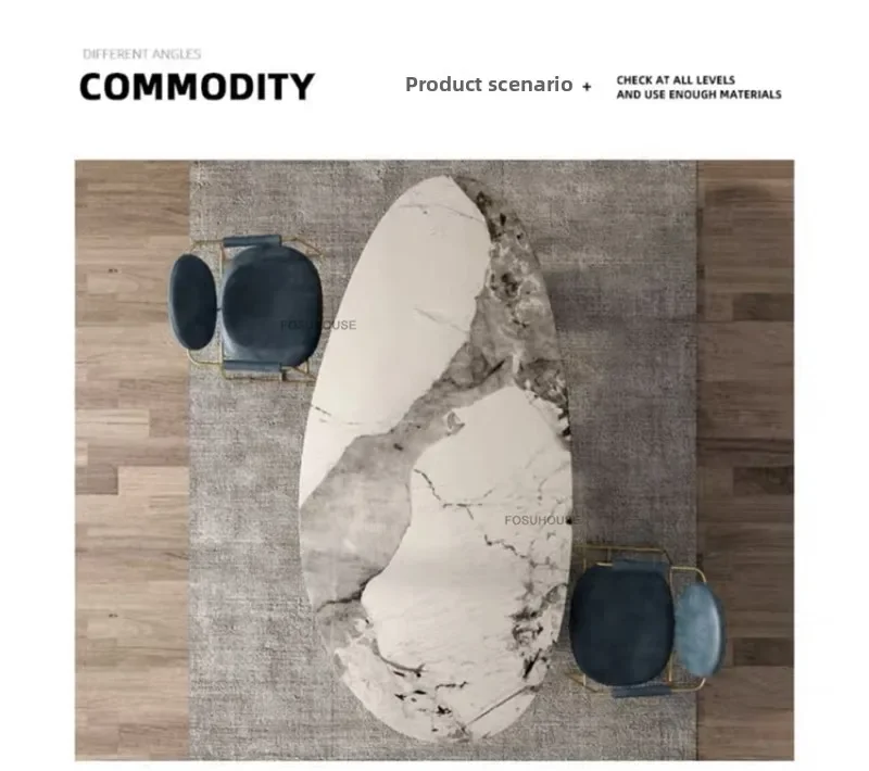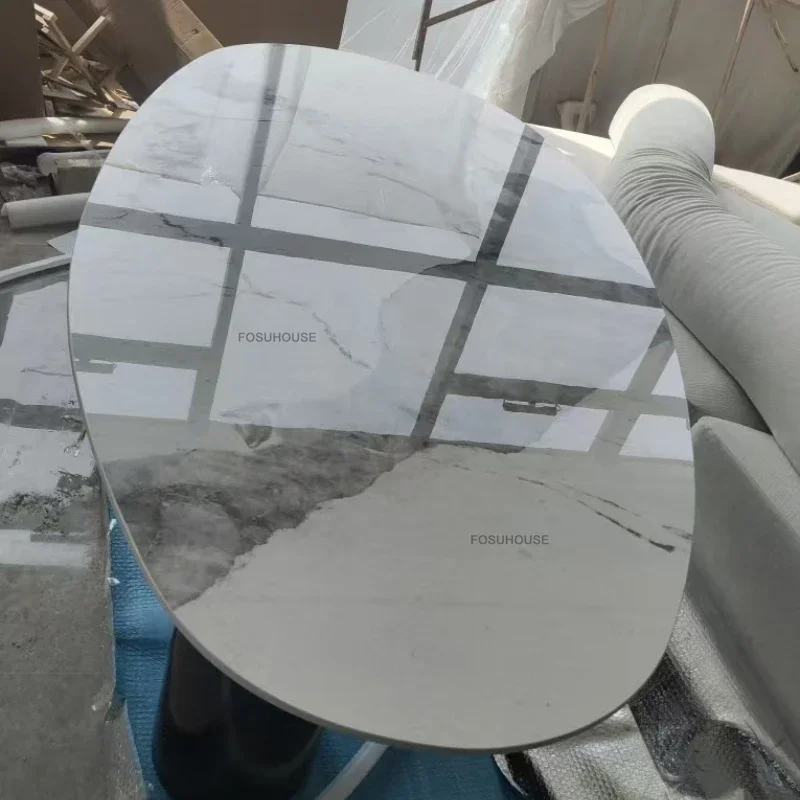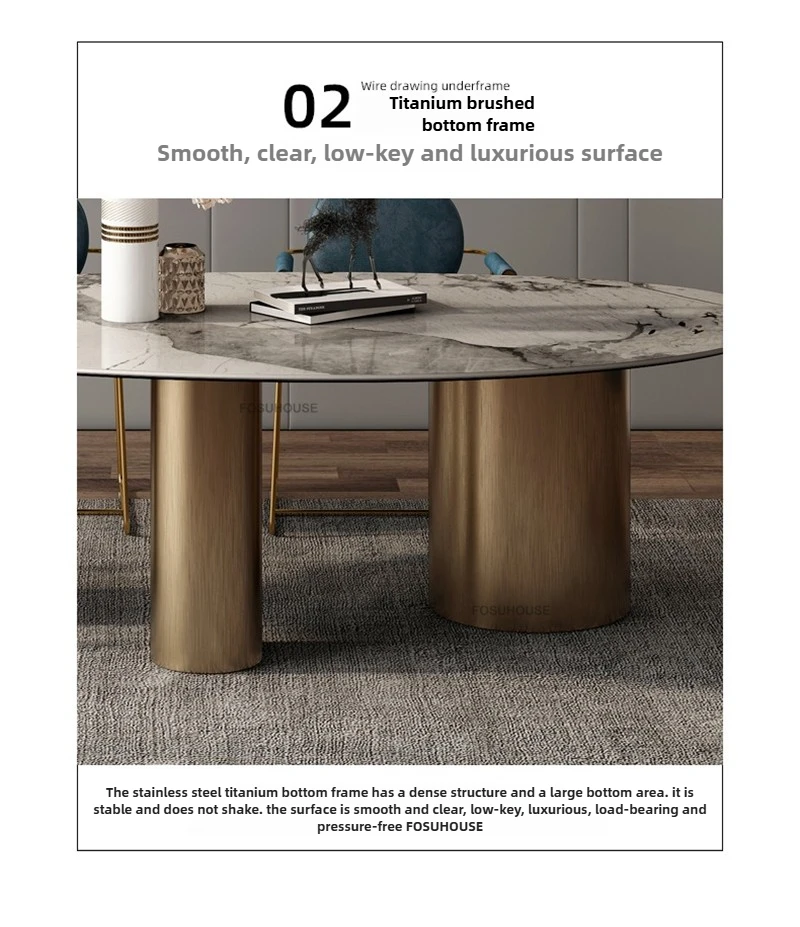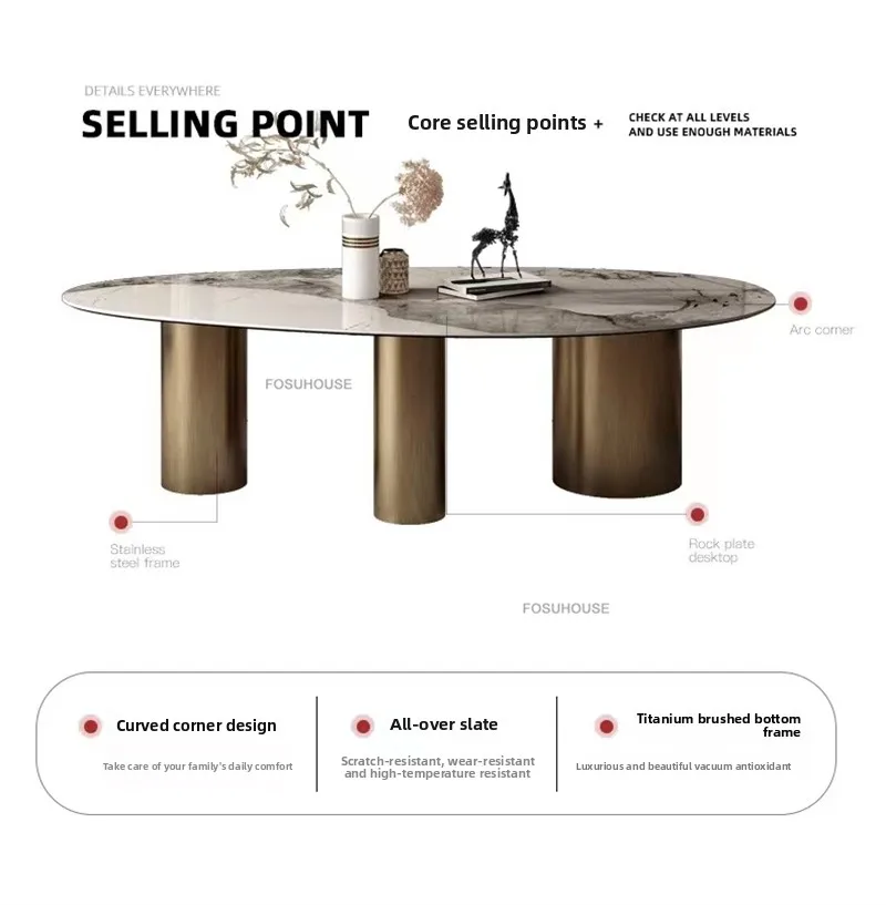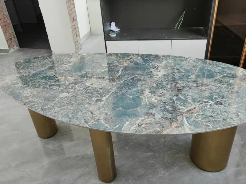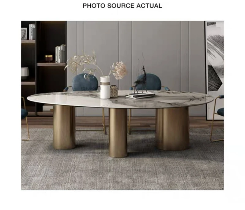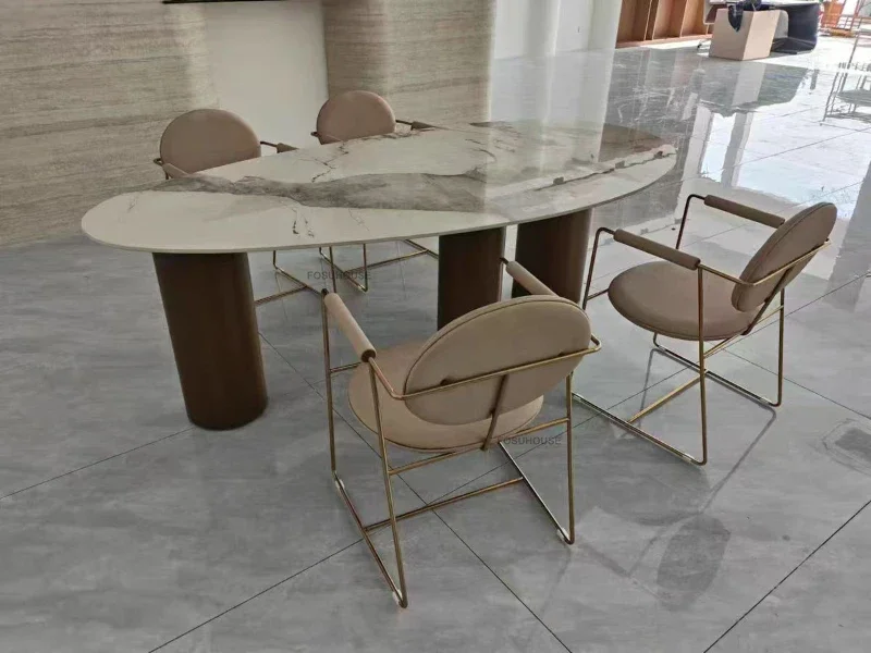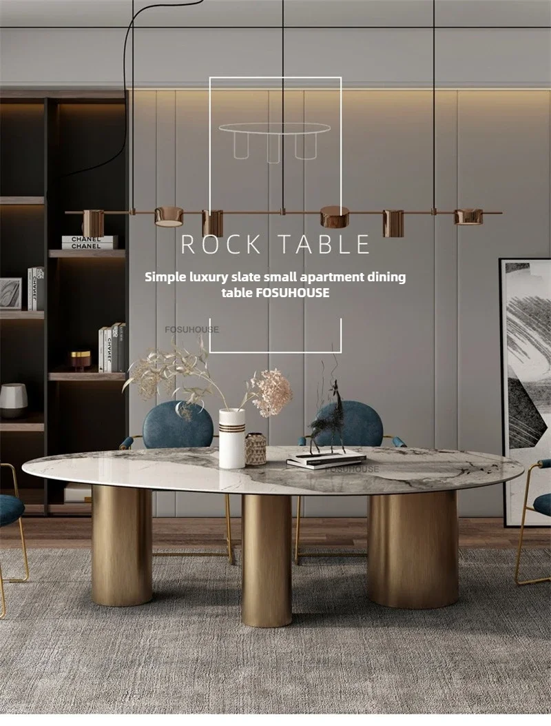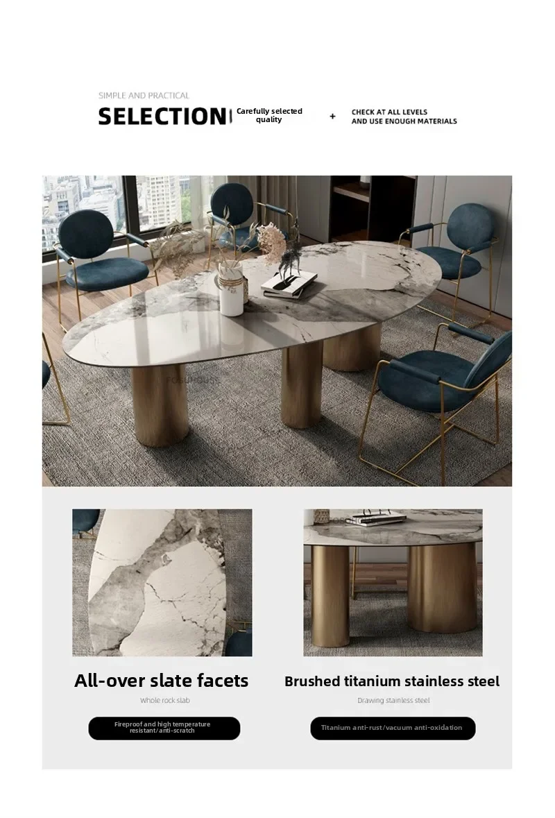 Italian Light Luxury Rock Plate Dining Tables Stainless Steel Oval Kitchen Tables Designer Villa Dining Table for Home Furniture