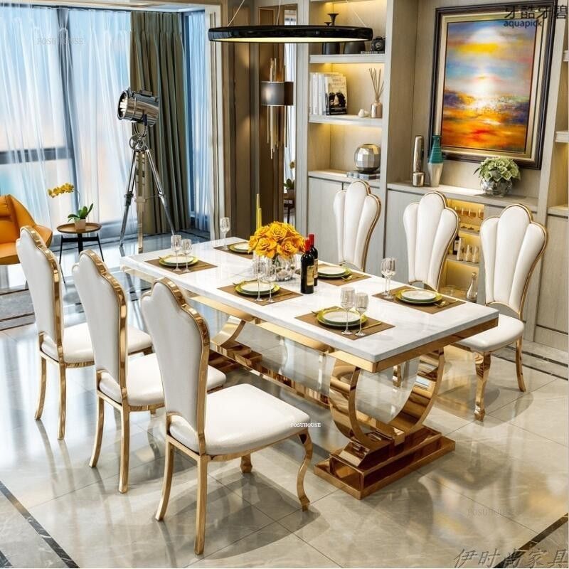 Luxury Stainless Steel Dining Tables Home Kitchen Furniture Italian Designer Dining Table and Chairs Minimalist Restaurant Table