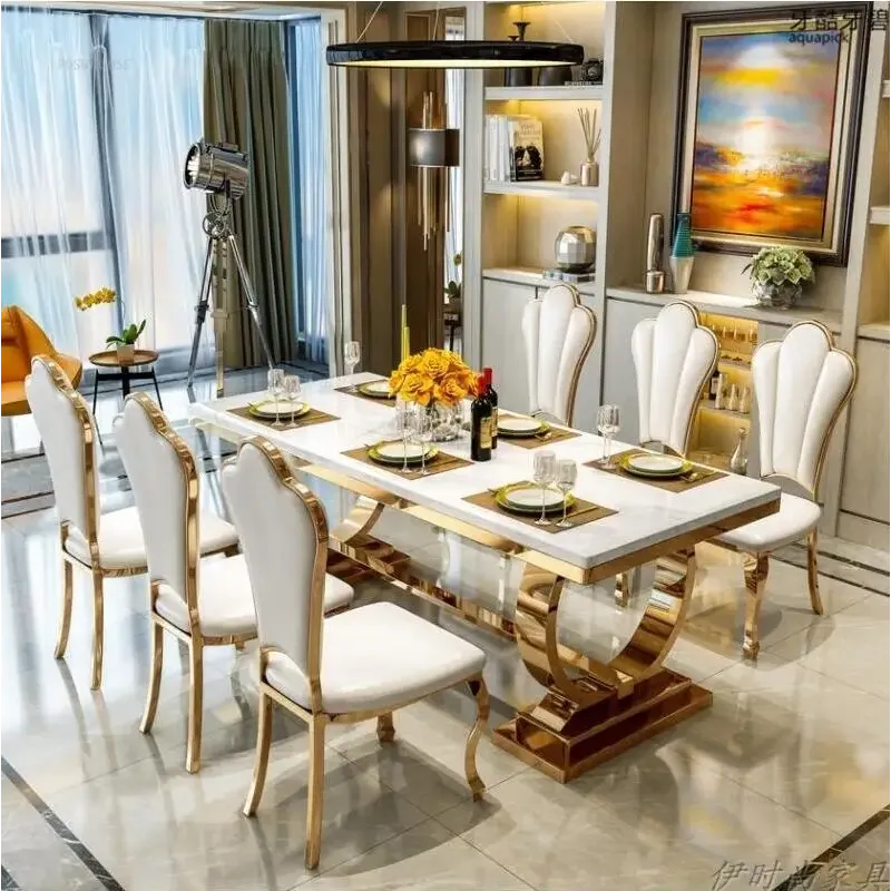 Luxury Stainless Steel Dining Tables Home Kitchen Furniture Italian Designer Dining Table and Chairs Minimalist Restaurant Table