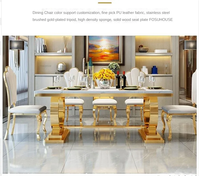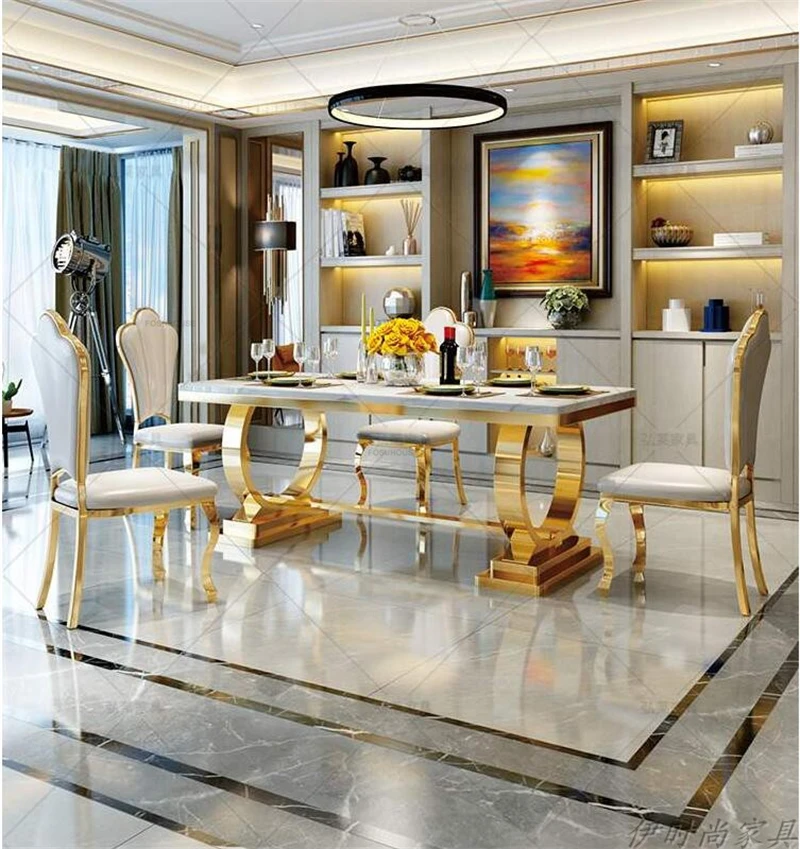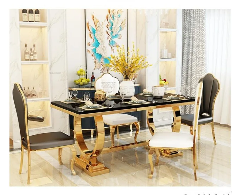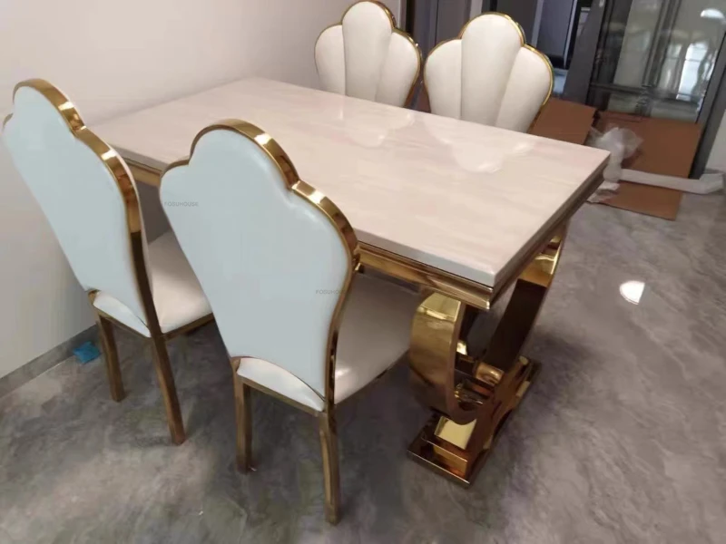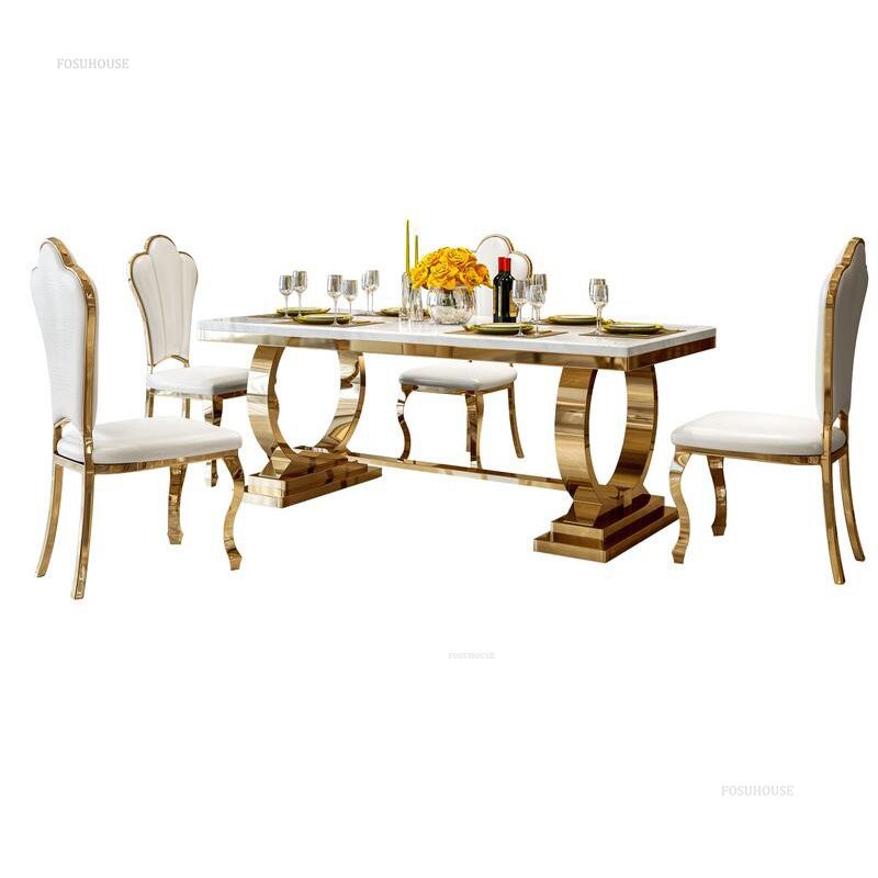 Italian Luxury Stainless Steel Dining Tables Home Kitchen Furniture Designer Dining Table and Chairs Minimalist Restaurant Table