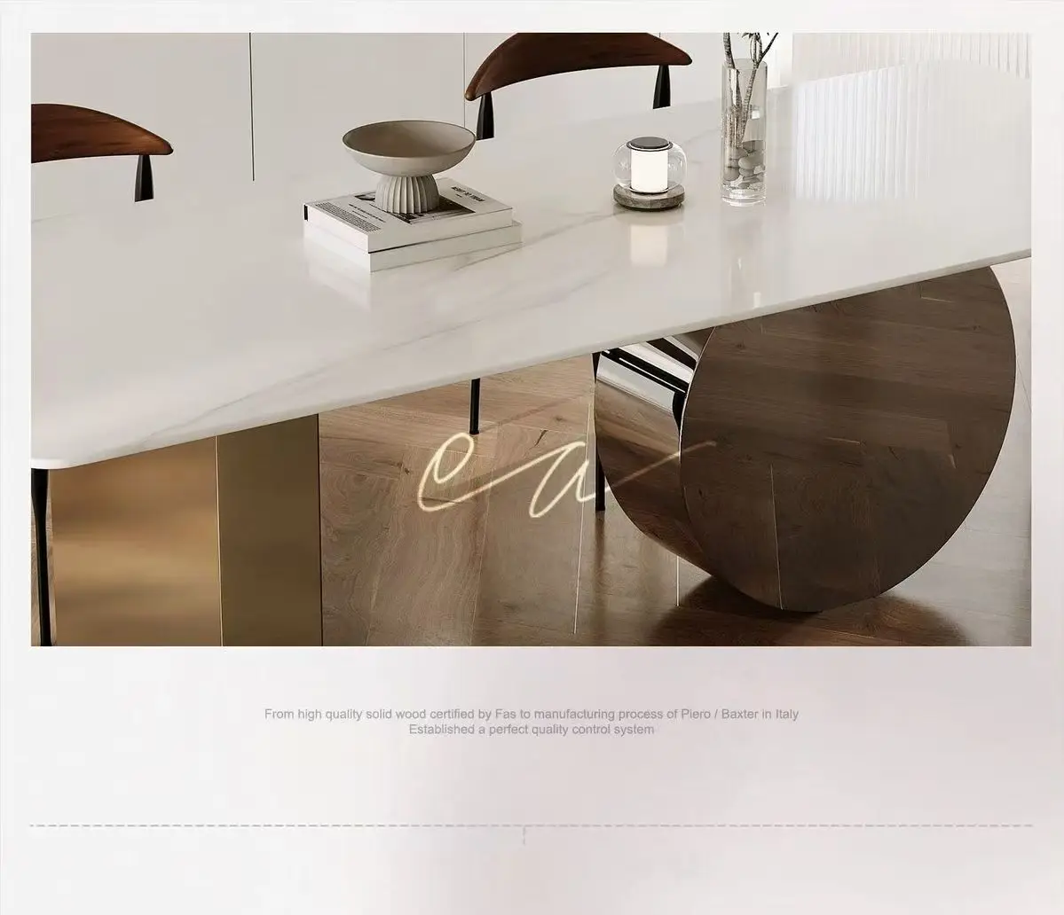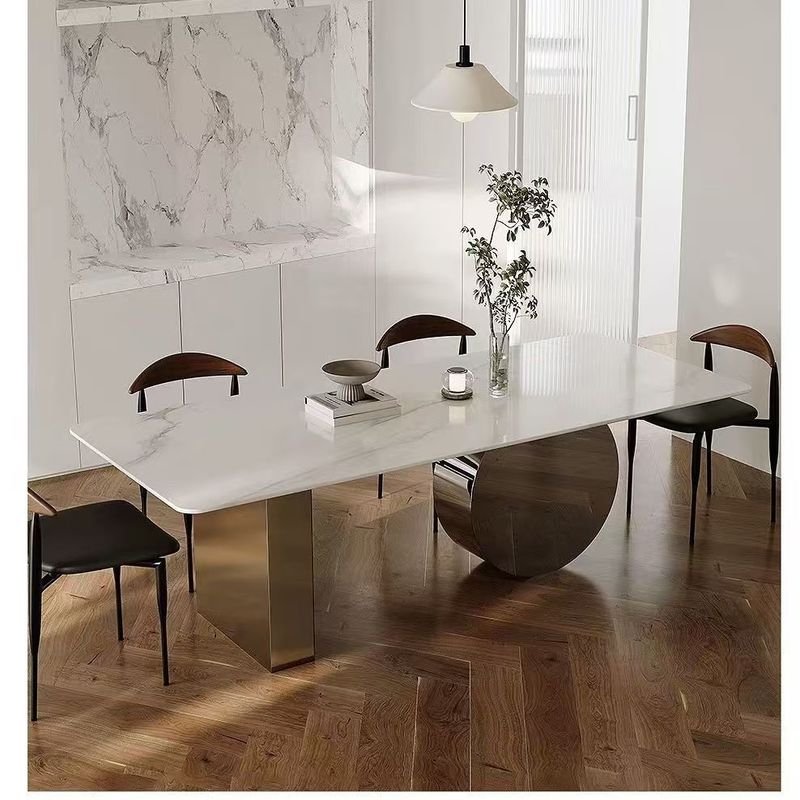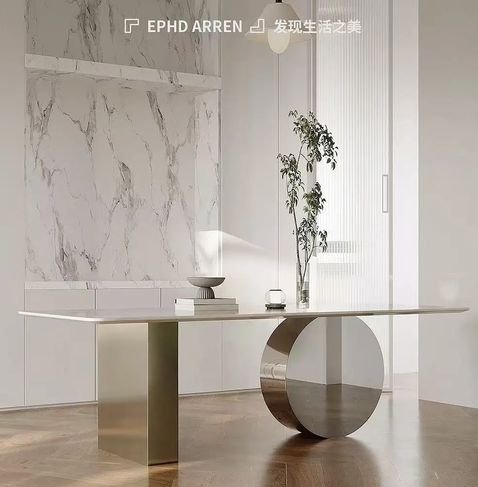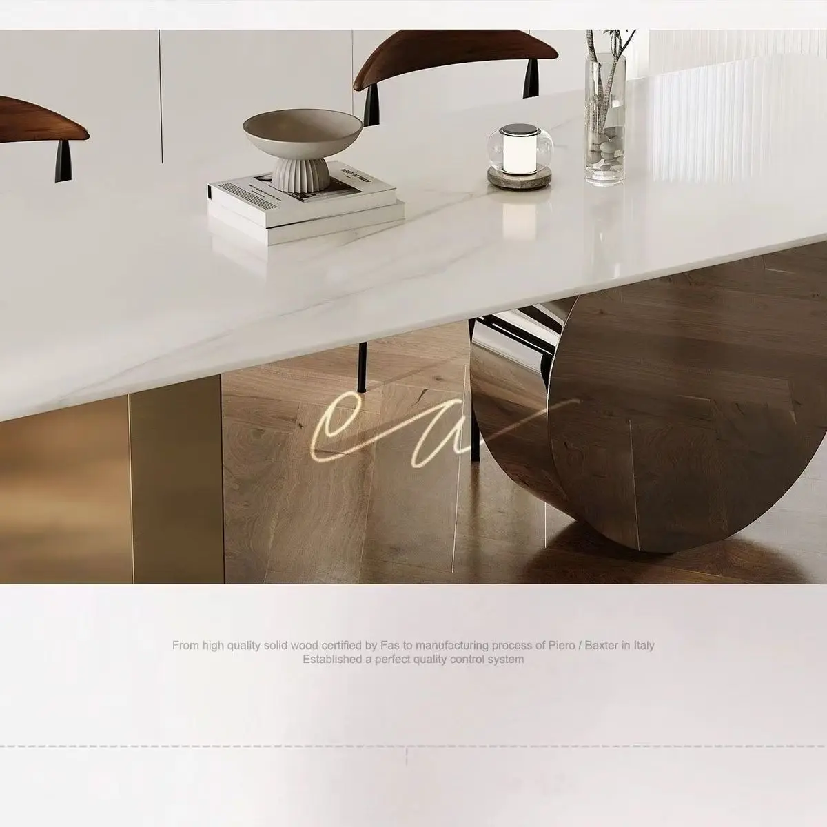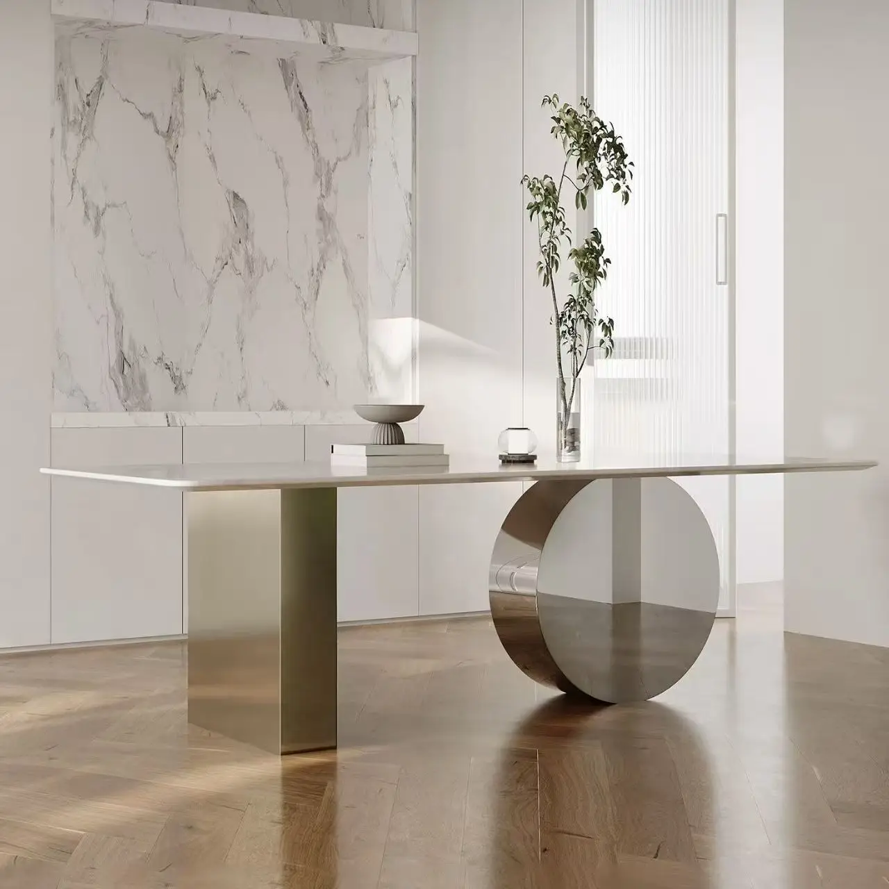 Italian minimalist high-end dining table marble stainless steel universal home living room dining table