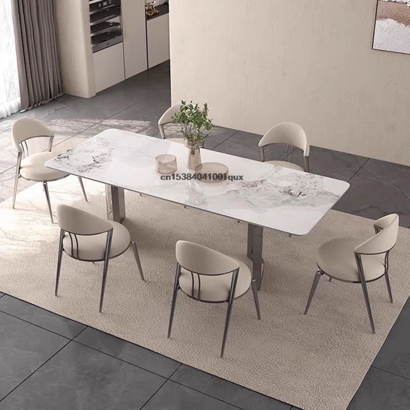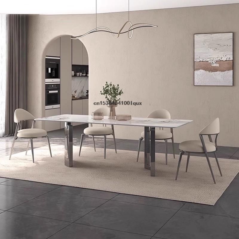 Italian Style Dinner Rectangle Table Designer Stainless Steel Base Kitchen Furniture minimalist Dining Room Table And Chair Set