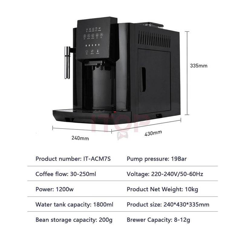 ITOP ACM7S Full Automatic 19 Bar Coffee Maker Coffee Bean Grinder Milk Foam Espresso Coffee Machine Hot Water and Milk Froth