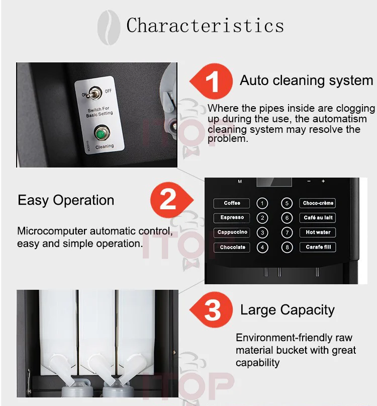 (Espresso, latte Cappuccino, Mocha,Hot chocolate, hot water,Cafe Americano, Macchiato)