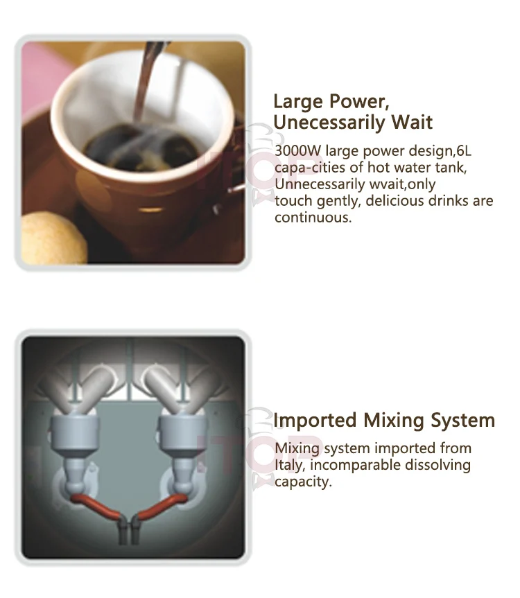 3000W large power design,6L capa-cities of hot water tank, Unnecessarily wait,only touch gently, delicious drinks are continuous.