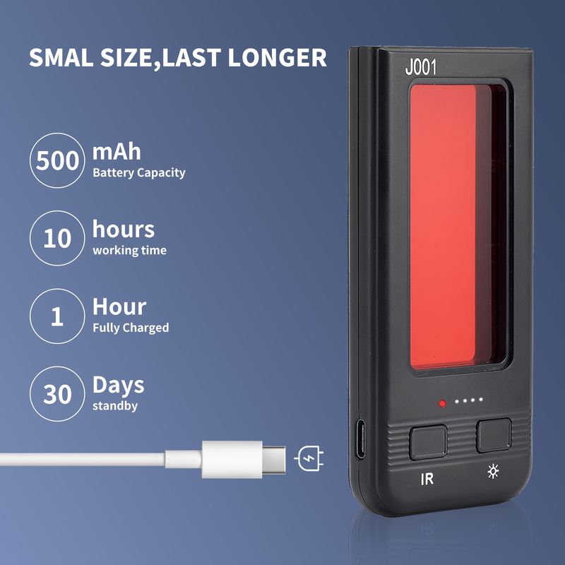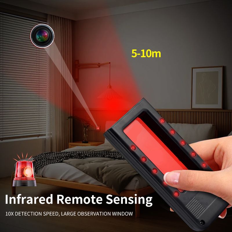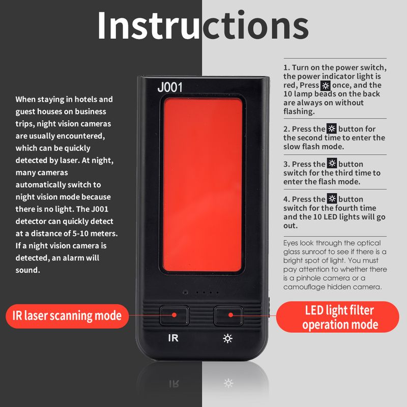 2.10x Detection Speed: Infrared mode detects night vision pinhole cameras 10 times faster than other models. The 10 brightest LED lights combined with a large infrared viewer help you find various cameras. It takes about 3 minutes to inspect a 100 square meter room.