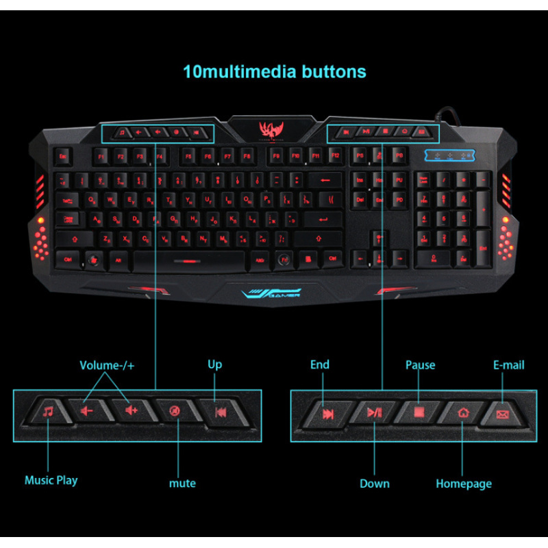 Type : Gaming Keyboard Number of keys: 108 (key) Interface: USB Connection with computer: Wired Tri-color light switching