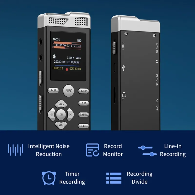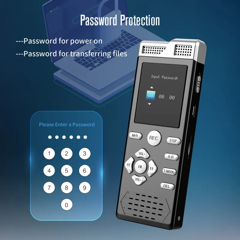 J26 Voice Activated Dual Mic Recording Password Protection Line-in Player External Function Voice Recorder MP3 Player Dictaphone