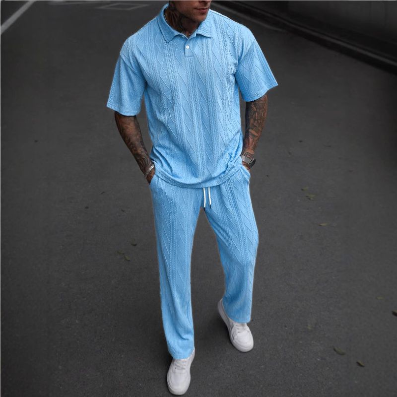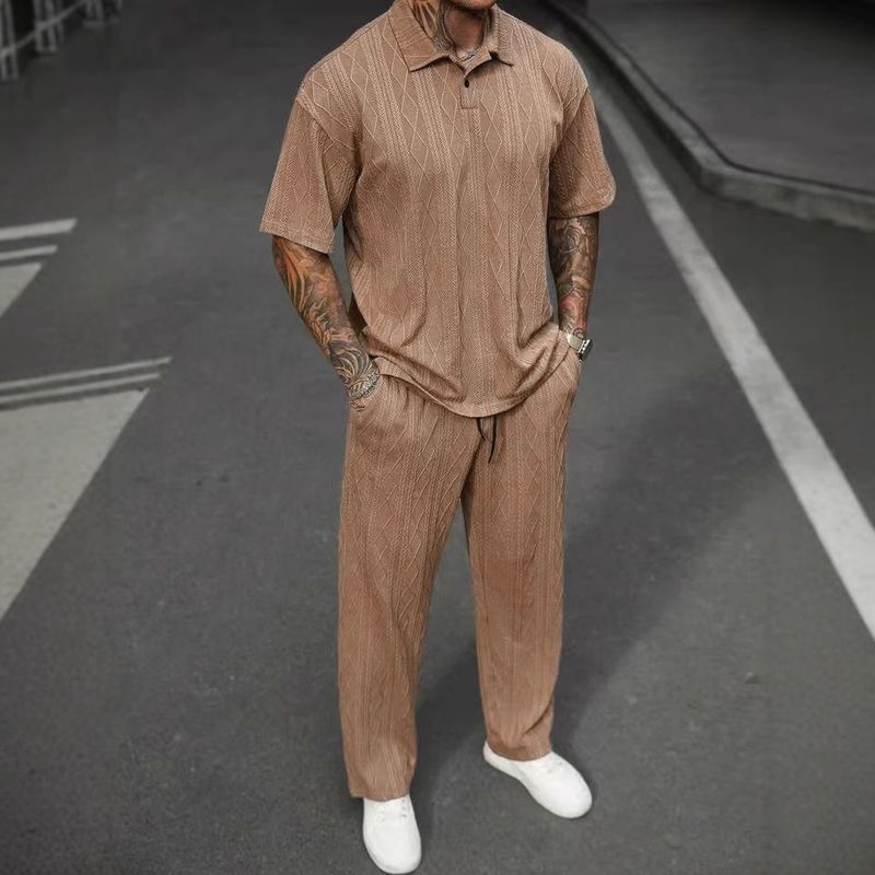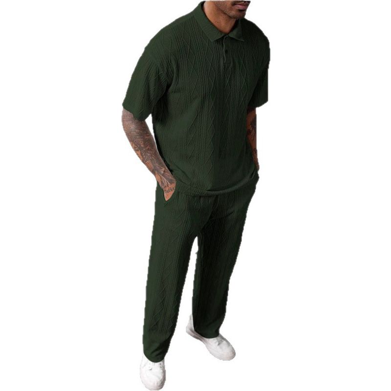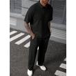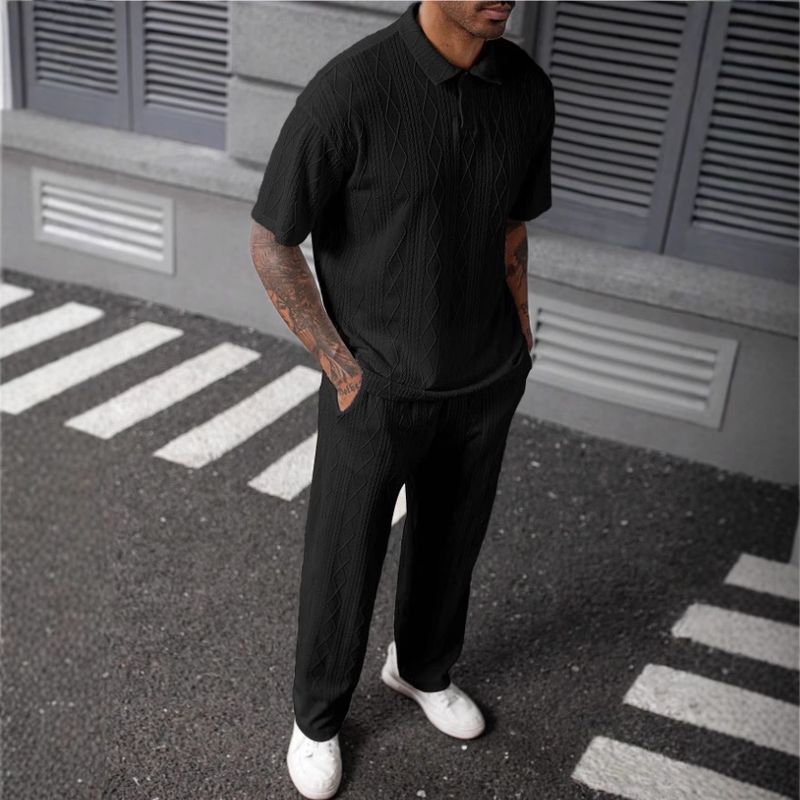 Jacquard Texture Polo Shirt Men's Short-sleeved Trousers Casual Two-piece Suit Black M