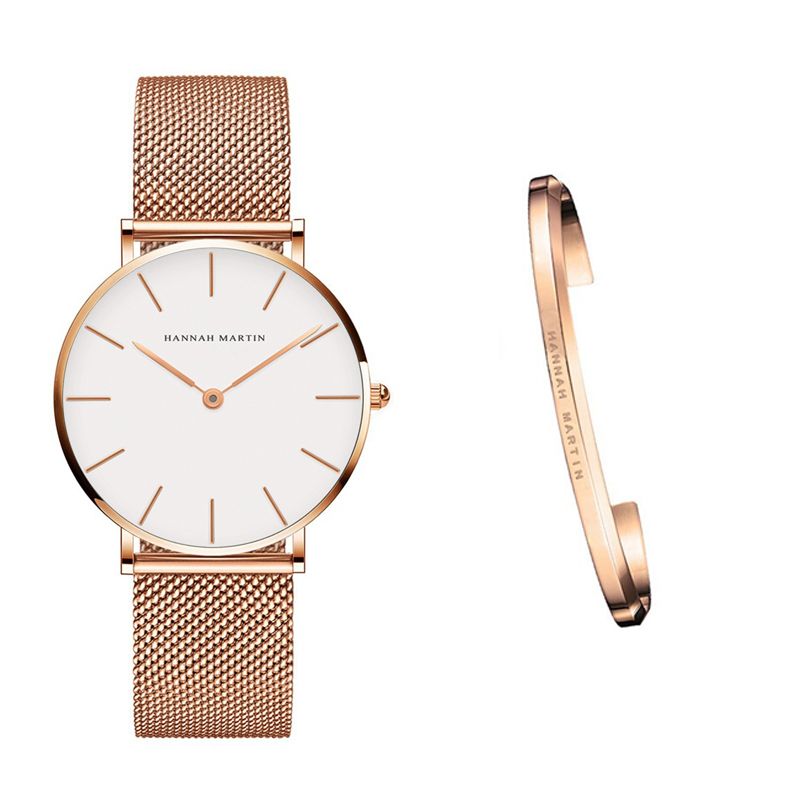 Japan Quartz Movement High Quality 36mm hannah Martin Women Stainless Steel Mesh Rose Gold Waterproof Ladies Watch A Rose gold