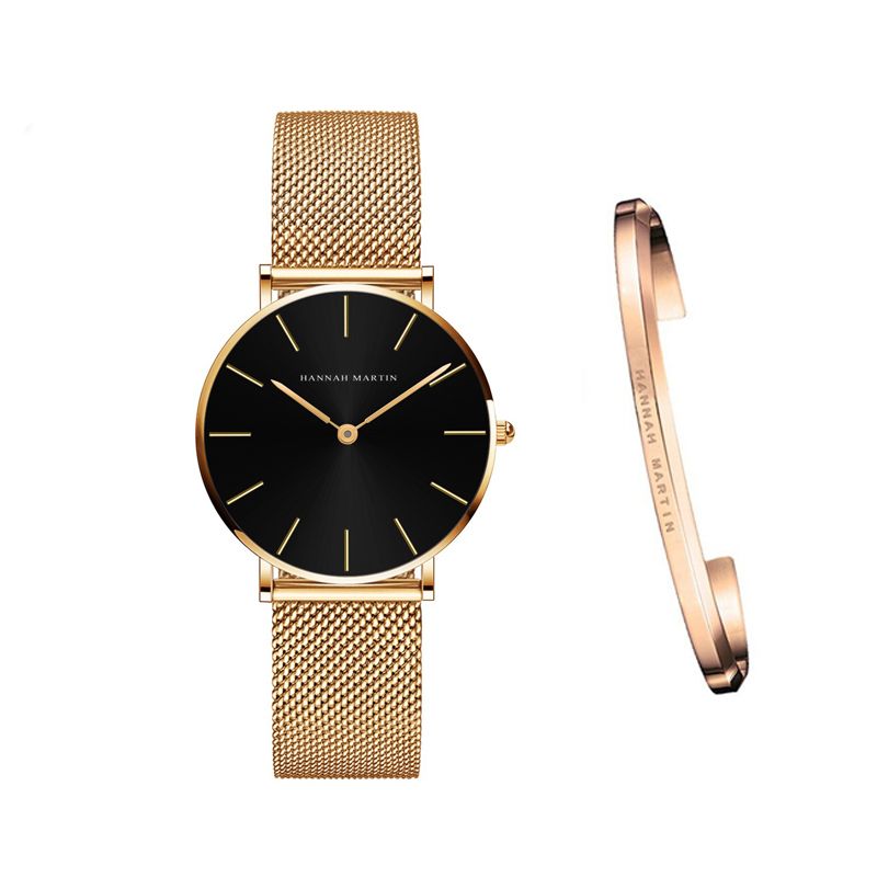 Japan Quartz Movement High Quality 36mm hannah Martin Women Stainless Steel Mesh Rose Gold Waterproof Ladies Watch B Gold
