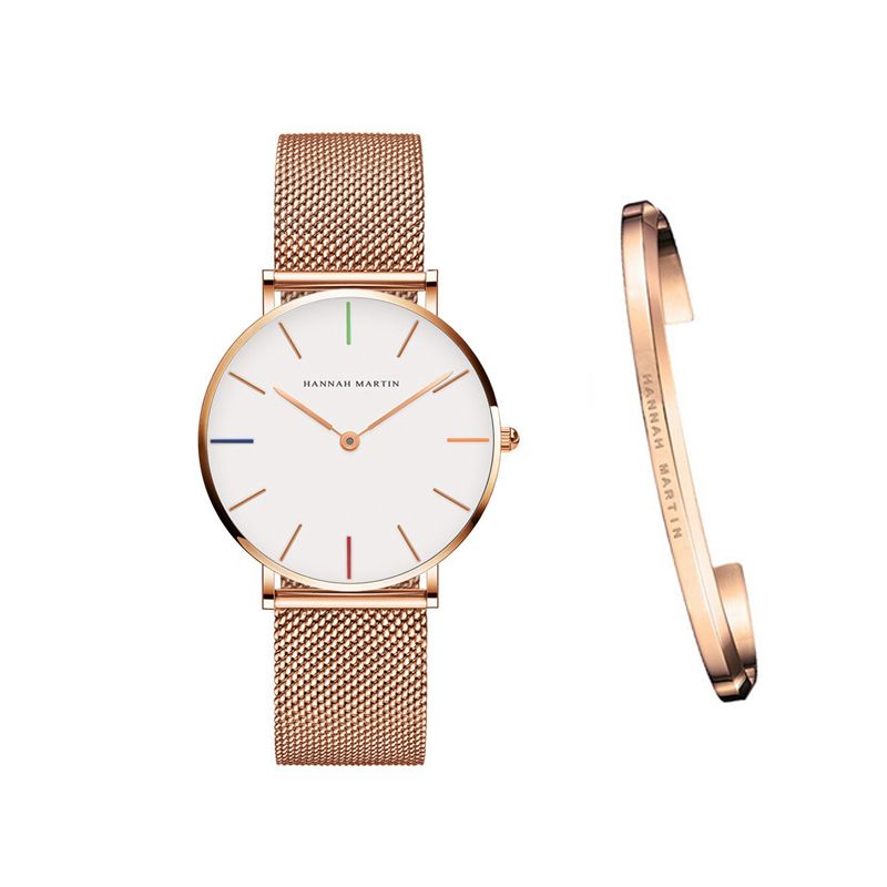 Japan Quartz Movement High Quality 36mm hannah Martin Women Stainless Steel Mesh Rose Gold Waterproof Ladies Watch B Rose gold