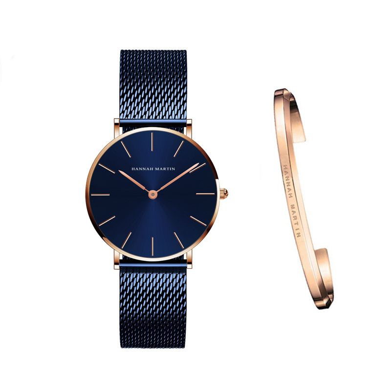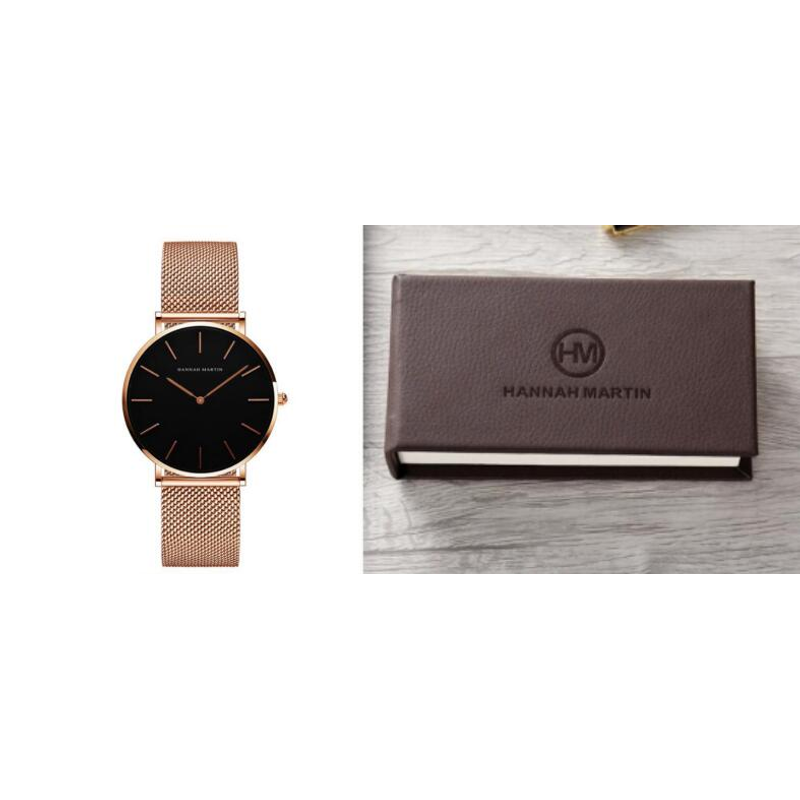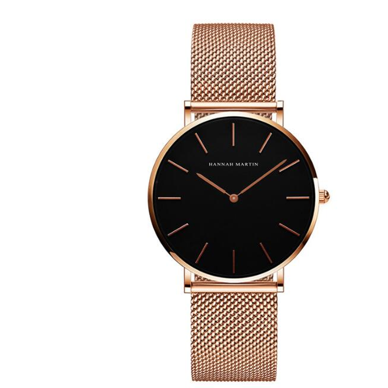 Japan Quartz Movement High Quality 36mm hannah Martin Women Stainless Steel Mesh Rose Gold Waterproof Ladies Watch Silver
