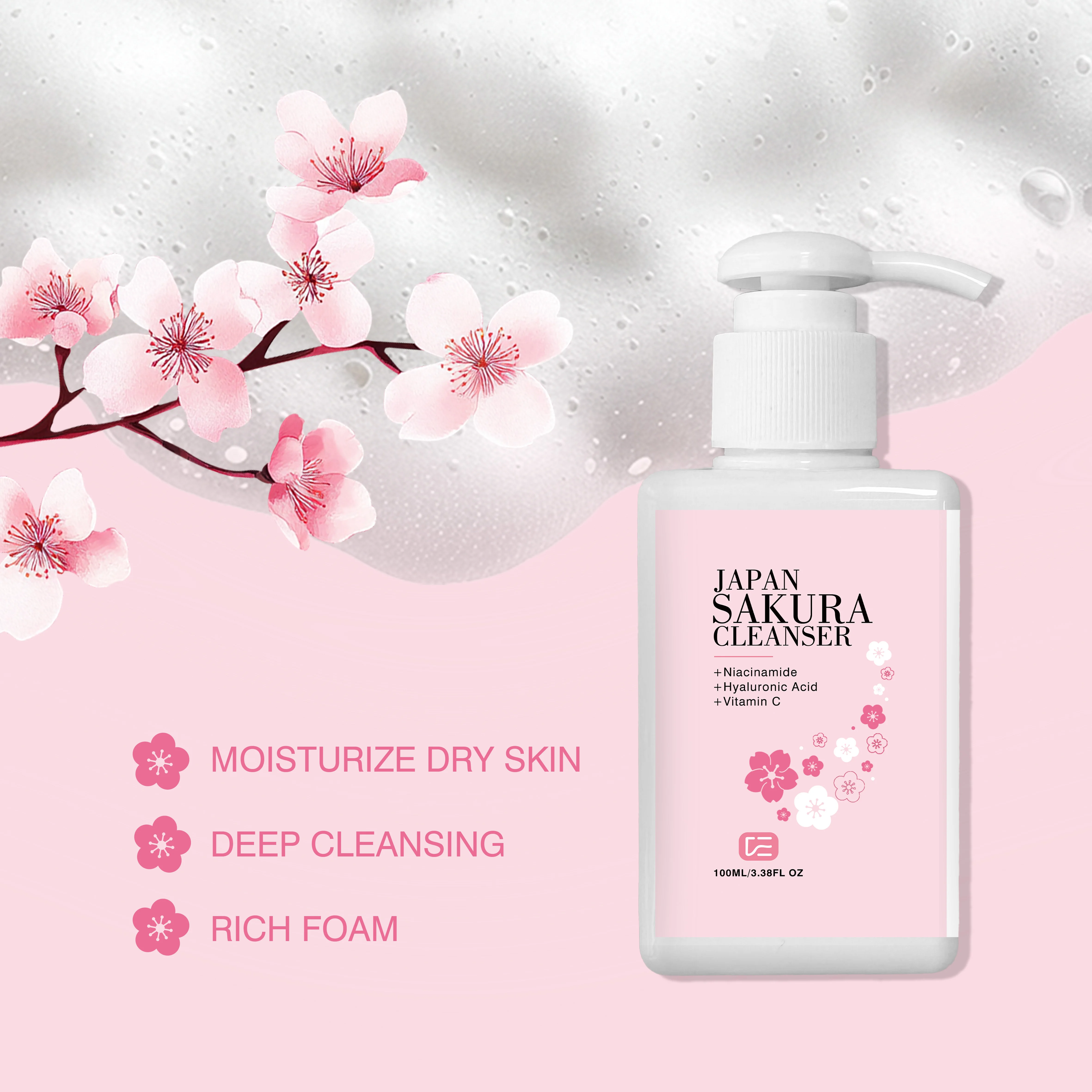 JAPAN SAKURA CLEANSER - Deep Pore Cleansing Cherry Blossom Cleanser for All Skin Types, Daily Morning & Night Skincare Routine