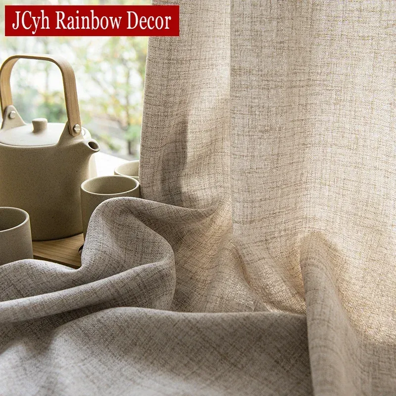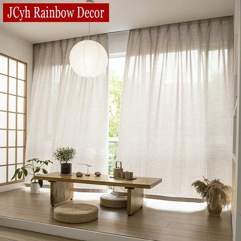 Japan Style Thick Sheer Curtains for the Living Room Semi Tulle Curtain for Windows Solid Cortina Ready-made Voile Privacy Decor