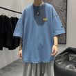 Japanese Casual Men''s 5-sleeve T-shirt Men''s Loose Fashion Brand Round Neck Street Waffle Half Sleeve T-shirt Men''s Wear Blue XL