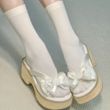Japanese Cos Clogs Slippers Women Summer New Sweet Bow Wood Grain Thick-bottomed Comfortable Platform Shoes High-heeled Slippers