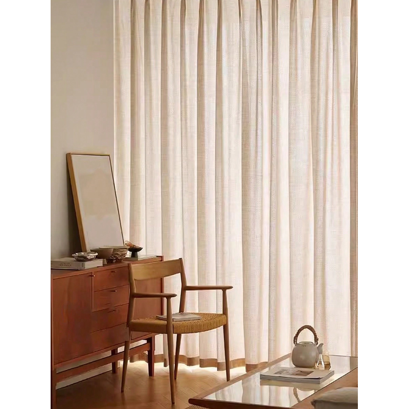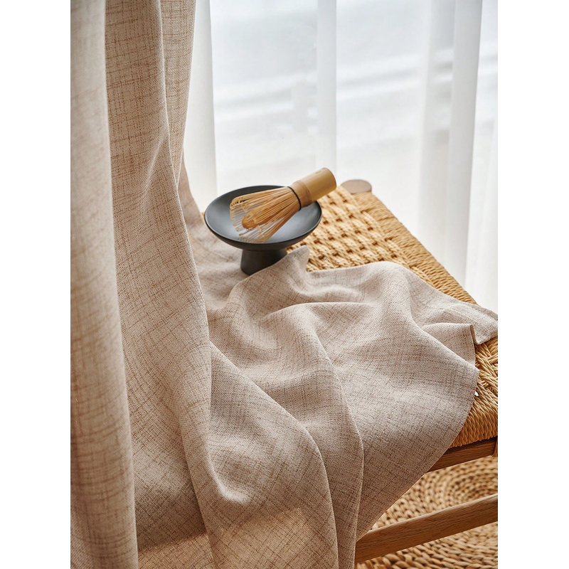 Japanese linen texture, natural wood wind light transmission and non transparency bedroom living room window curtain