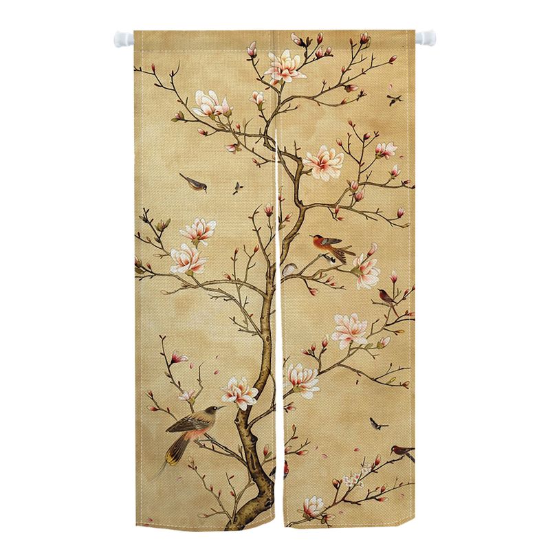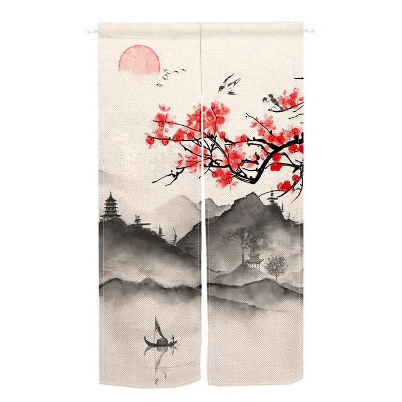 Japanese Noren Curtain Cherry Blossom Wave Crane Half Curtain For Kitchen Doorway Living Room Bedroom Decor Washable Curtains
