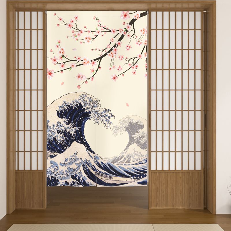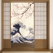 Japanese Noren Curtain Cherry Blossom Wave Crane Half Curtain For Kitchen Doorway Living Room Bedroom Decor Washable Curtains