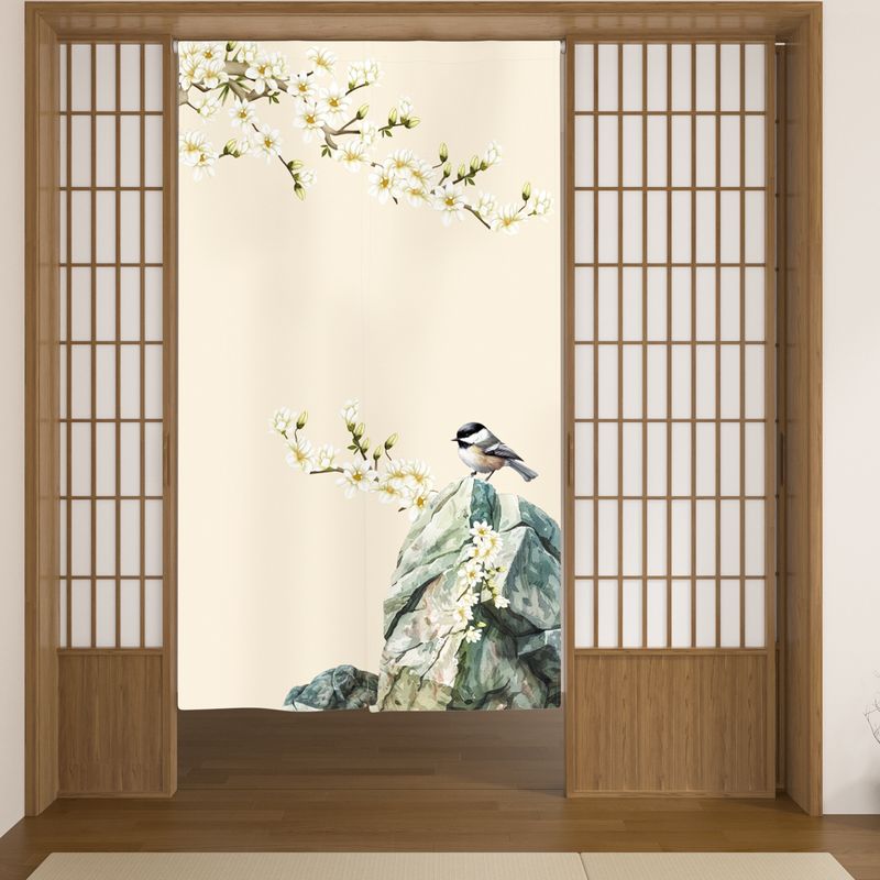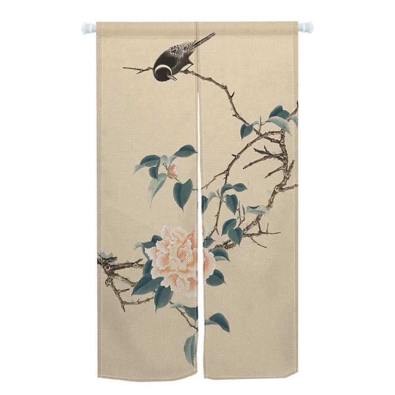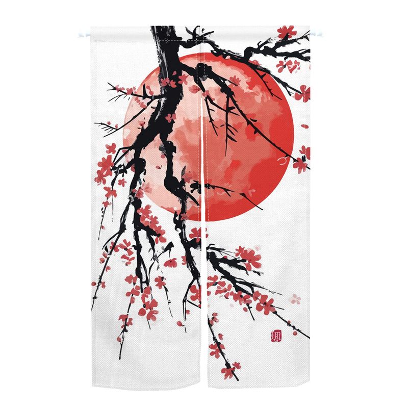 Japanese Noren Curtain Cherry Blossom Wave Crane Half Curtain For Kitchen Doorway Living Room Bedroom Decor Washable Curtains