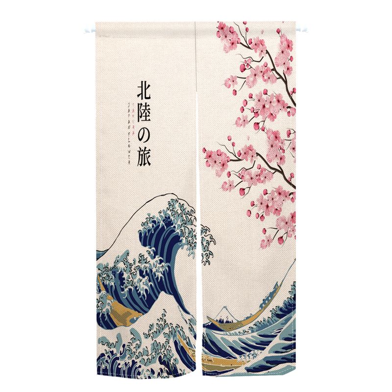 Japanese Noren Curtain Cherry Blossom Wave Crane Half Curtain For Kitchen Doorway Living Room Bedroom Decor Washable Curtains
