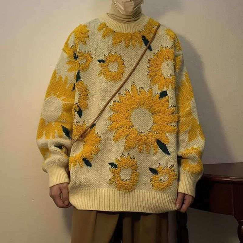 Japanese-style Retro High Street Lazy Sunflower Sweater Apricot XL