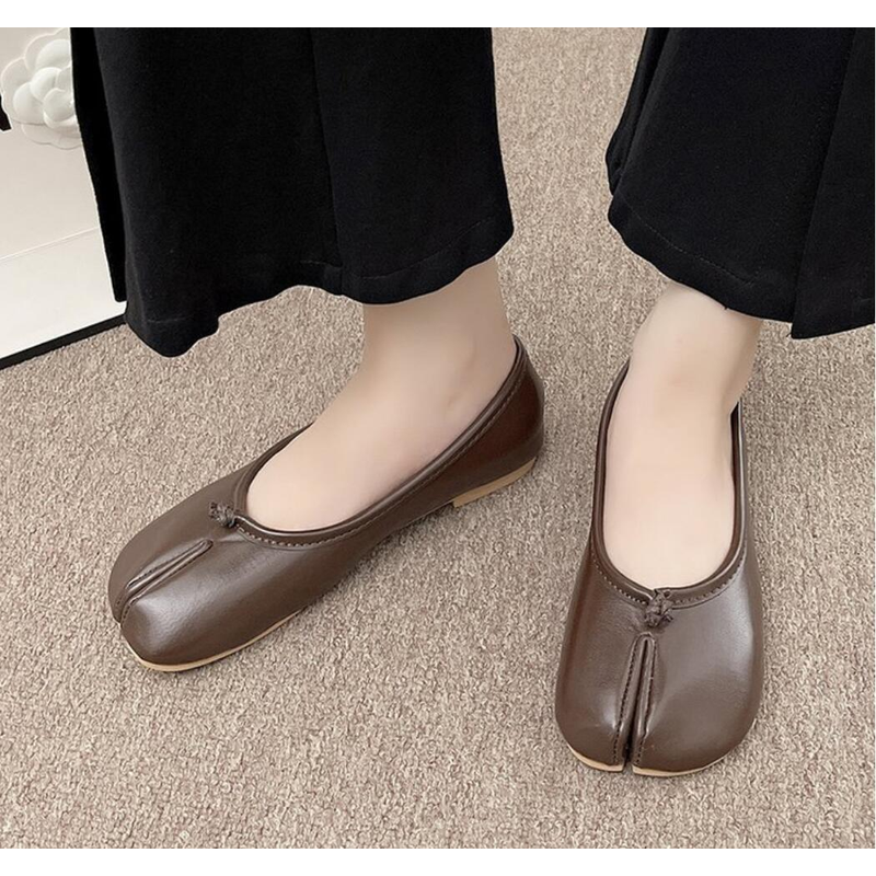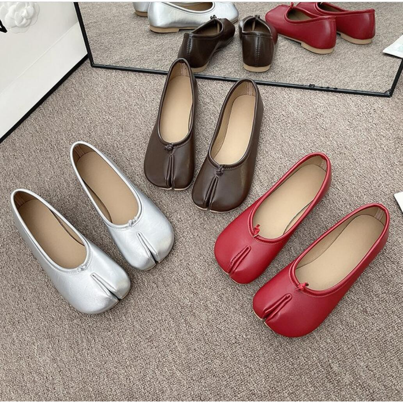 Japanese Style Tabi Ninja Shoes Women Cozy Leather Flats Split Hoof Toe Loafers Femme Mary Jeans Mocasines Ladies Ballerina Shoe