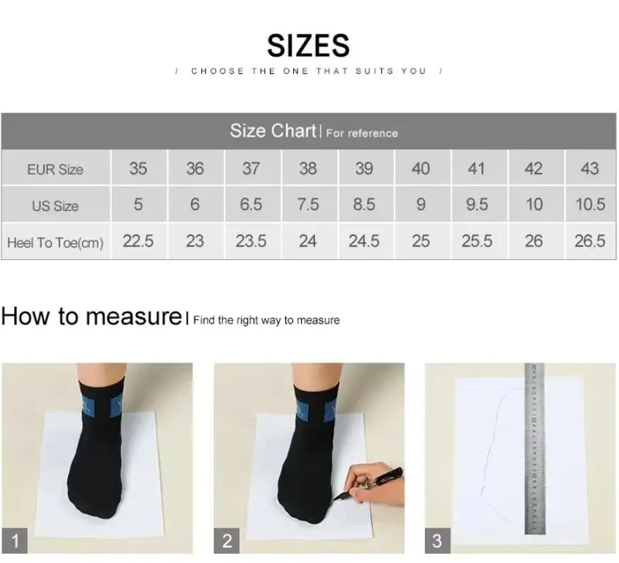 1. Choose the size according to your foot length (don't choose the size according to the usual size in your country!!!)