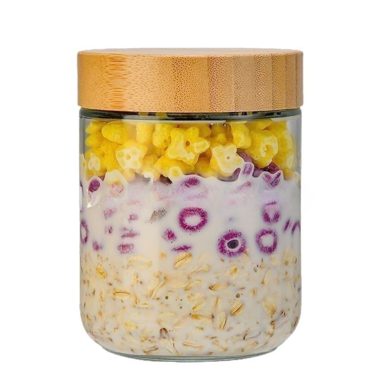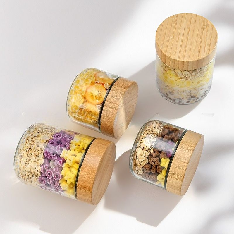 Jars with Airtight Lid 300/500/750ml Night Oats Container with Bamboo Lids Glass Snack Storage Salad Jars ,Yogurt, Sugar Glass