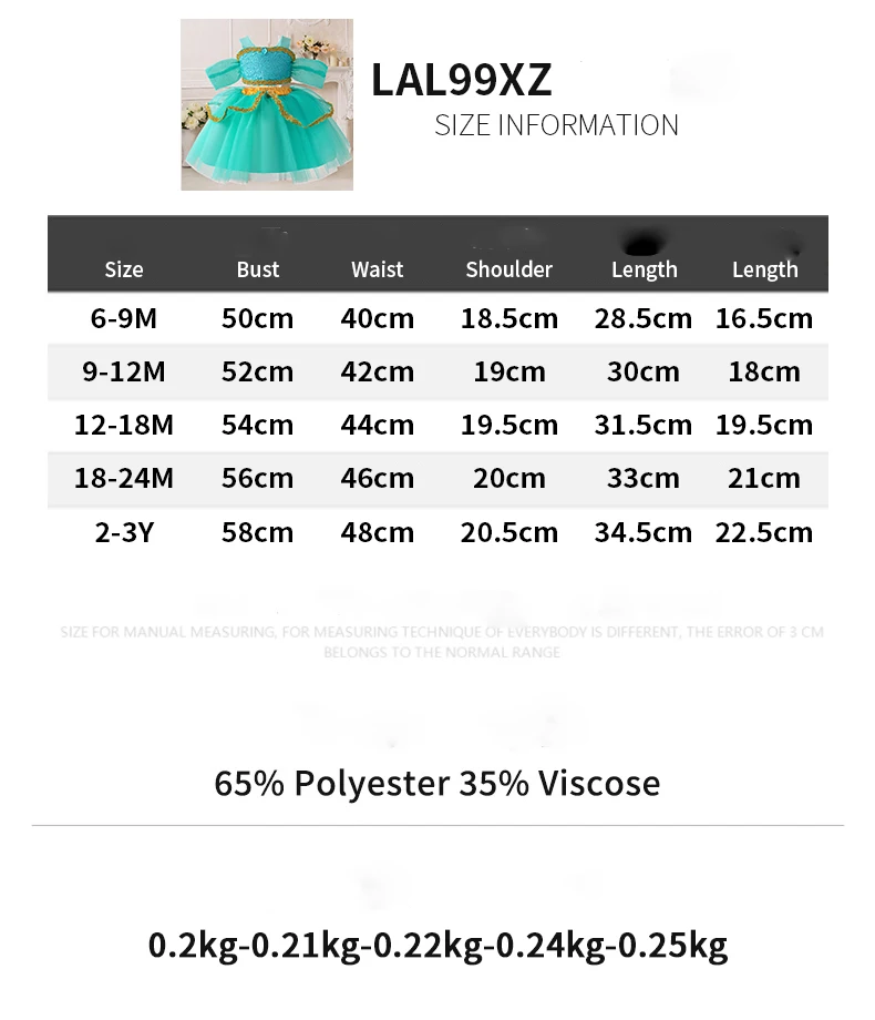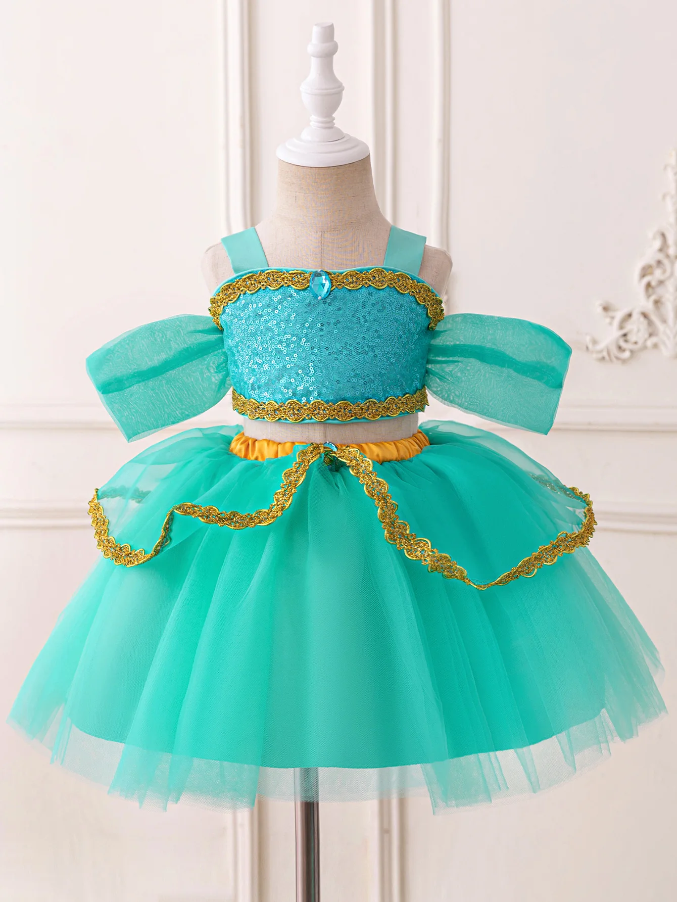Jasmine Princess Party Baby Girls Dress Aladdin Magic Lamp Toddler 1st Birthday Prom Dresses Girl Wedding Halloween Kids Clothes