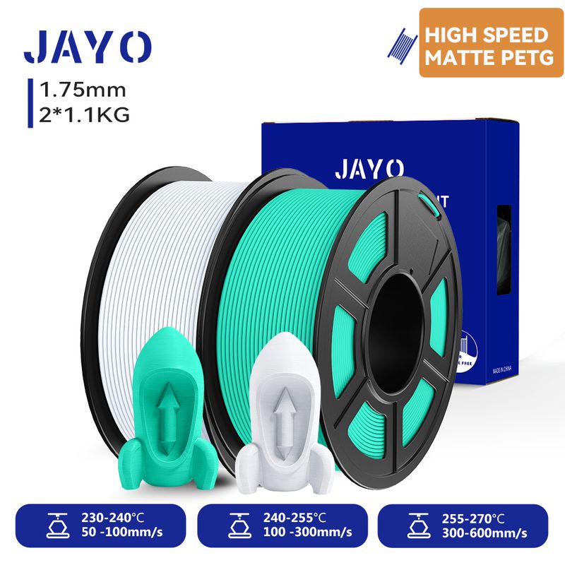 JAYO High Speed Matte PETG 3D Filament 1.75mm 30mm/s - 600mm/s Print Range High Flow Speedy PETG 3D Printer Filament for 3D
