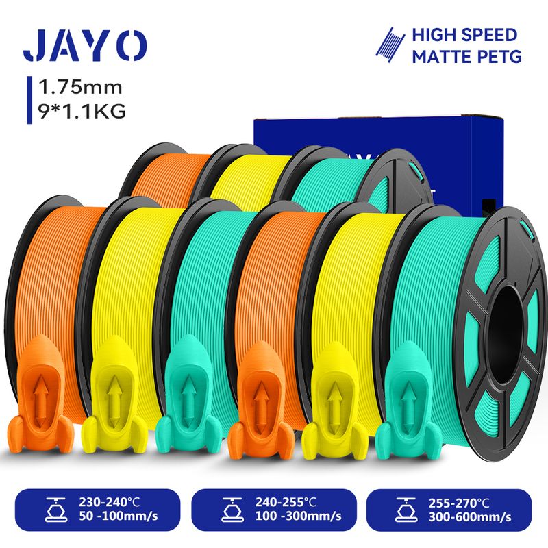 JAYO PETG 3D Filament 1.75MM High Speed PETG 3D Printer Filament 9Rolls High Flow Speedy Matte Effect 3D Printing Mateials