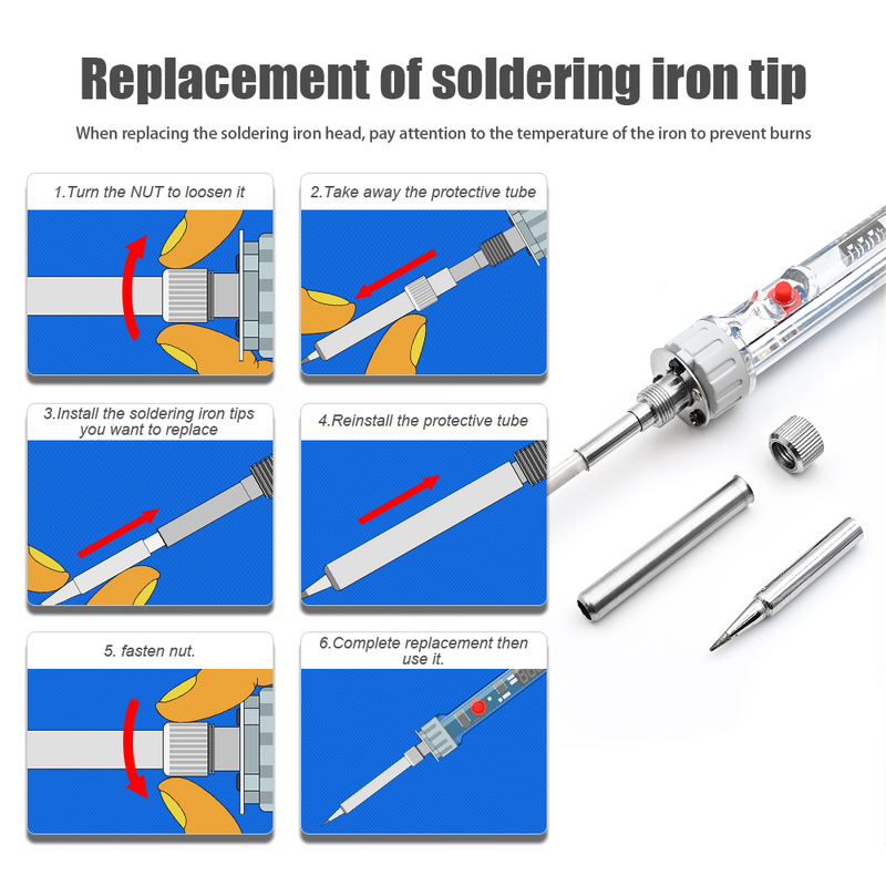 Soldering Iron Length: 1cm Cable Length: 125cm Note: Working Voltage: EU Plug have 220V, US Plug have 110V Power: 60W