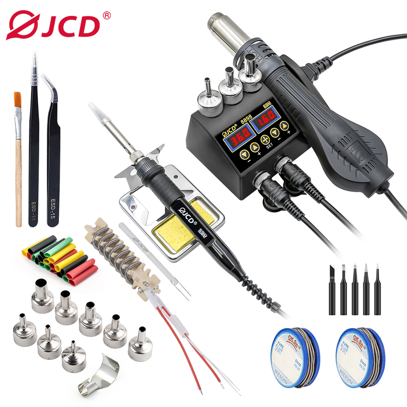 JCD 8898/8898PRO Soldering Station 2 in 1 LCD Digital Display Soldering Iron Hot Air Gun for cell-phone BGA SMD IC Repair Solder Tools