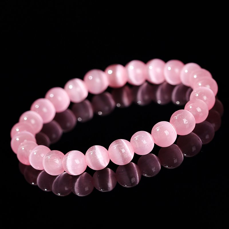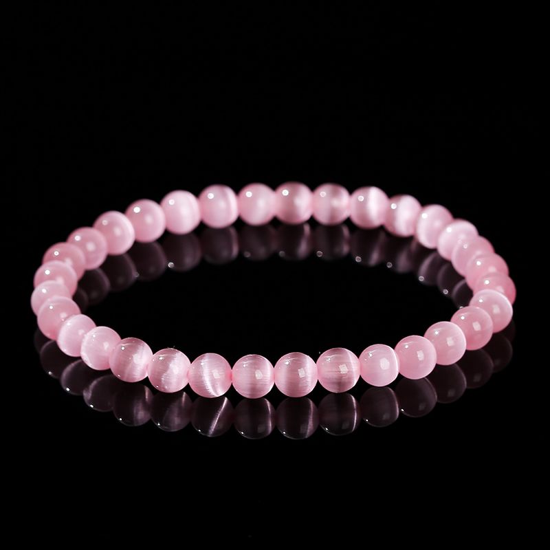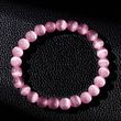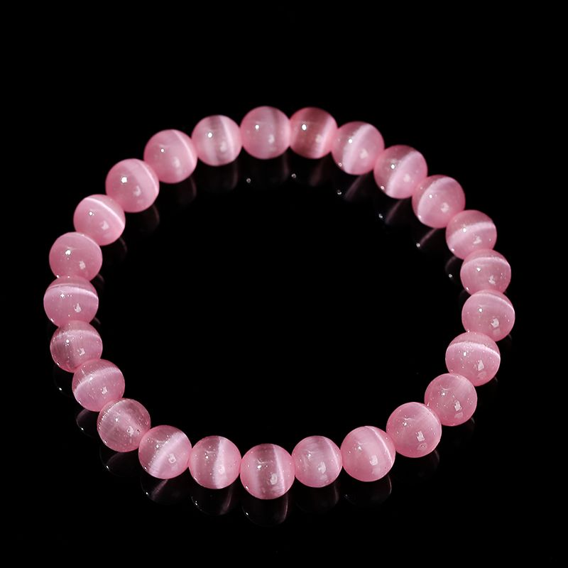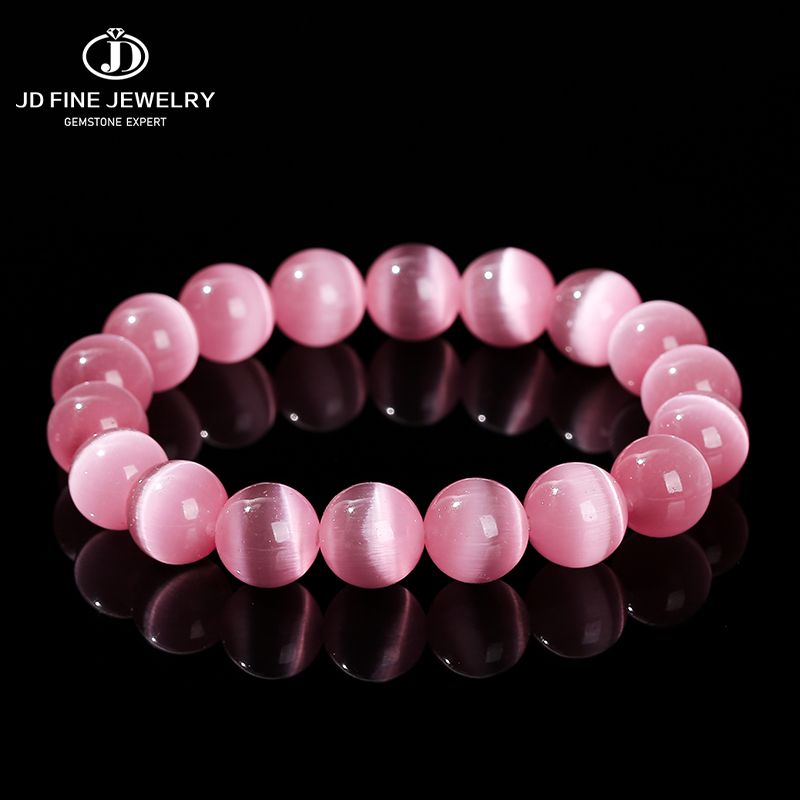 JD Natural Stone Dark Pink Cat Eyes Stone Strand Bracelet Women Simple Jewelry Gifts Round Bead Elastic Rope Bracelet For Girls