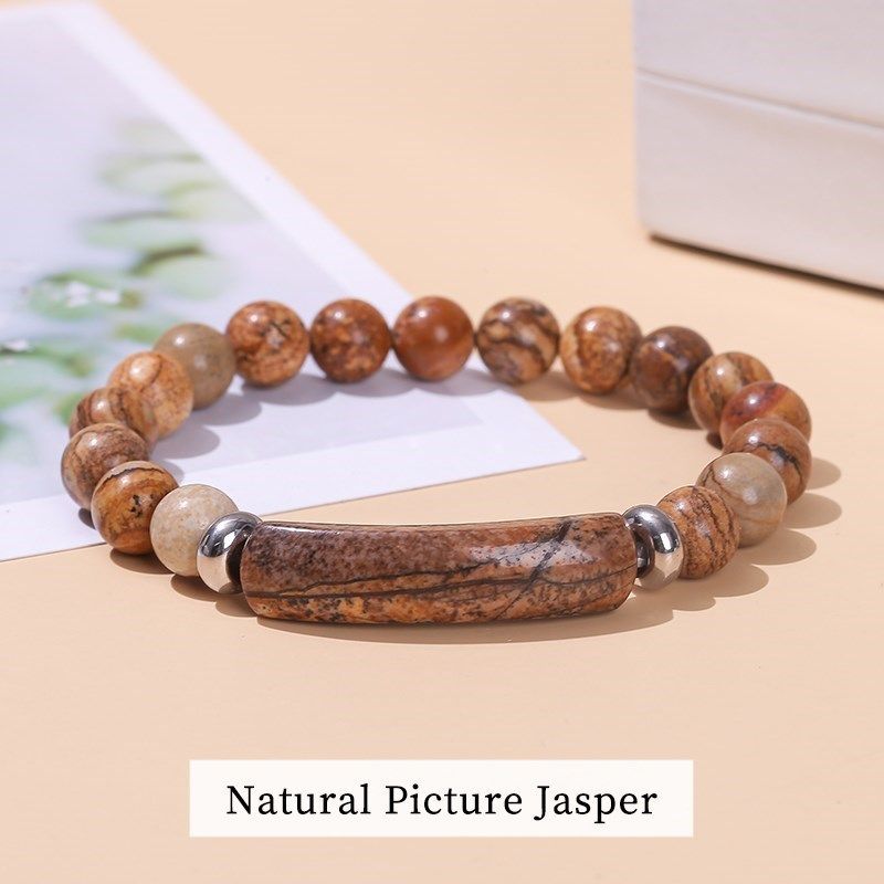 JD Natural Stone Tiger Eye Amethyst Rectangle Bar Charm Bracelet Women Men Healing Stone Powder Crystal Rough Chakra Jewelry