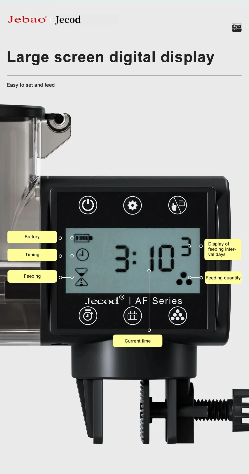 Timer Feeding:This automatic fish feeder has 3 different timer setting modes,andB series up to 6 feedings per day, Both of the feeding time can be freely selected.