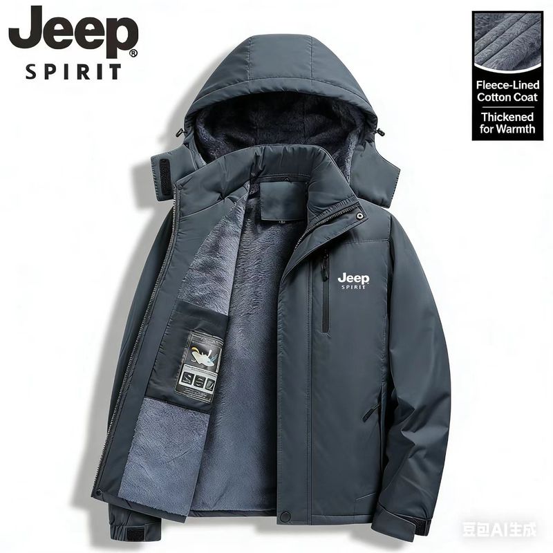 Jeep Spirit jacket for men's autumn and winter, thick outdoor hood detachable windbreaker, waterproof cotton top