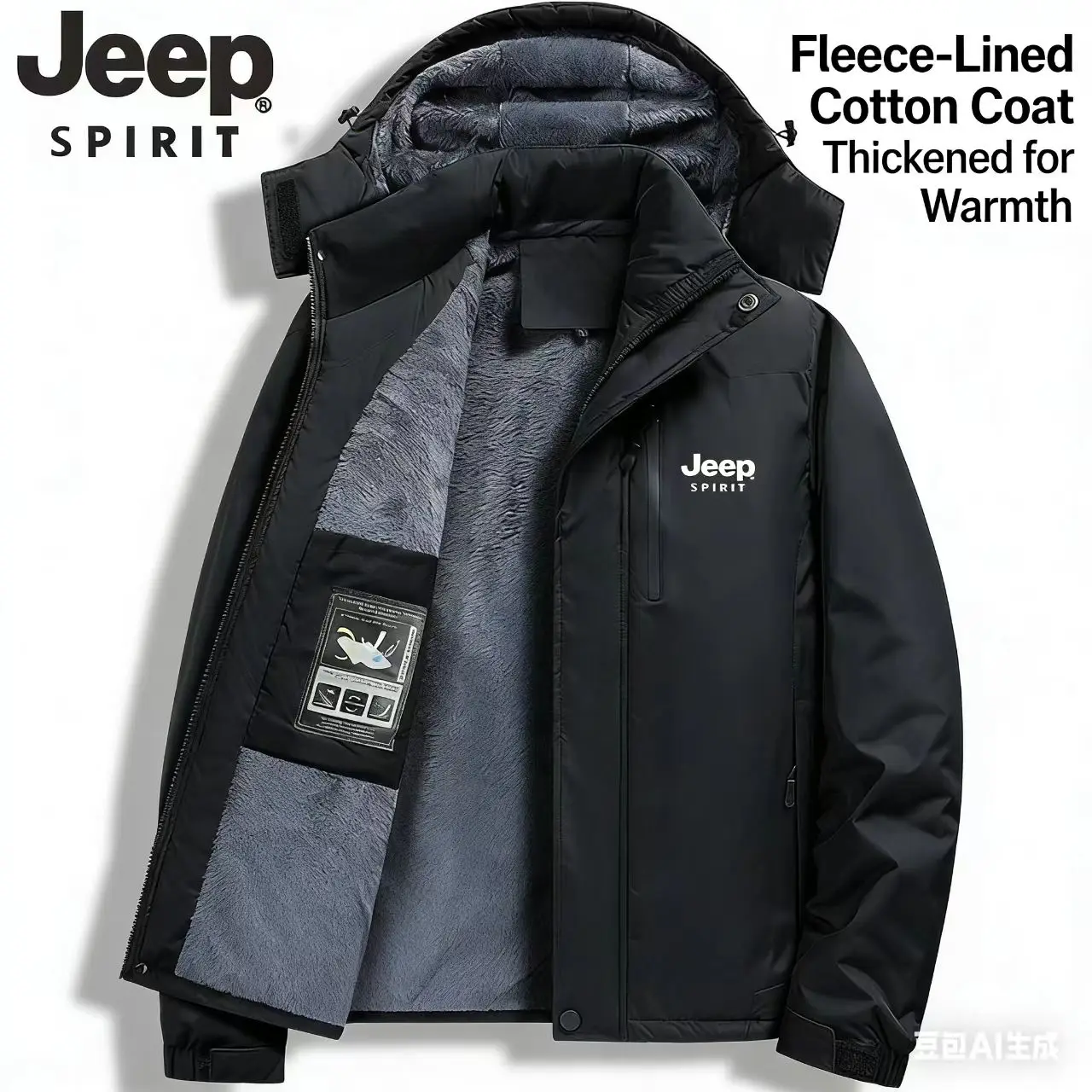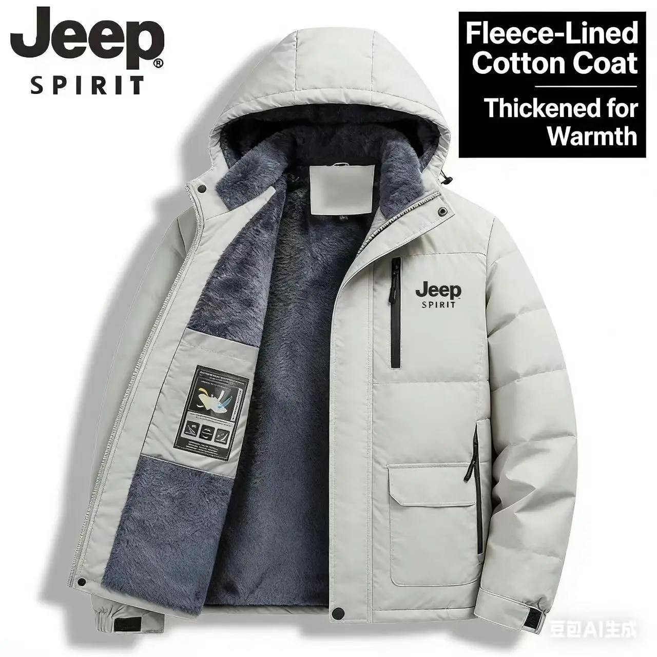 Jeep Spirit jacket for men's autumn and winter, thick outdoor hood detachable windbreaker, waterproof cotton top