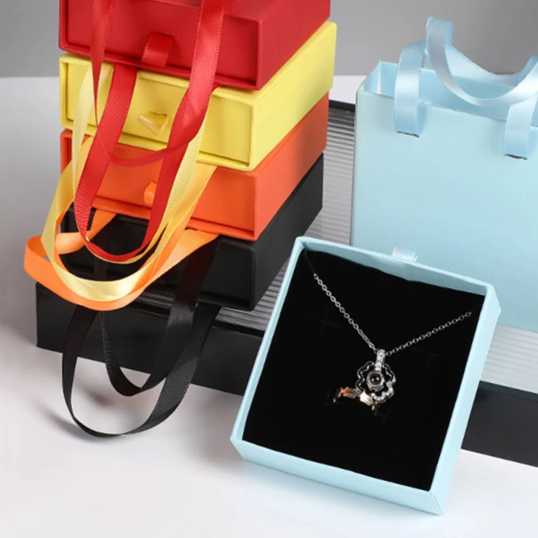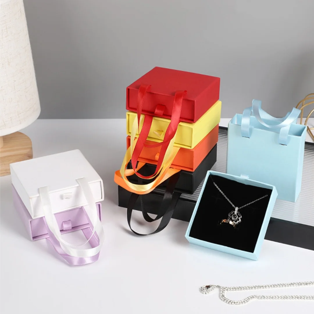 Jewelry Drawer Box with Handle Portable Ring Earrings Necklace Packageing Organizer Case Valentine's Day Gift Box Jewelry Box