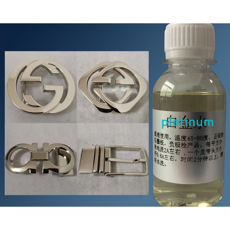 The electroplating liquid is used in conjunction with the electroplating machine to plate a layer of platinum or gold on the surface of the gold, silver and copper ornaments to protect the ornaments from oxidation. Mainly used for the electroplating of jewelry, watches, spectacle frames, etc. High hardness, good wear resistance, strong anti-tarnishing, thickness up to 1 micron, wide process range, simple operation.