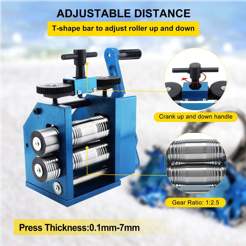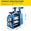 Durable Cast Iron & Steel: This jewelry rolling mill machine comes with a cast-iron frame and chrome steel forged rollers for sturdiness and long service life. The blue powdered coating on the surface provides good wearability and corrosion resistance to enable the device to work steadily.