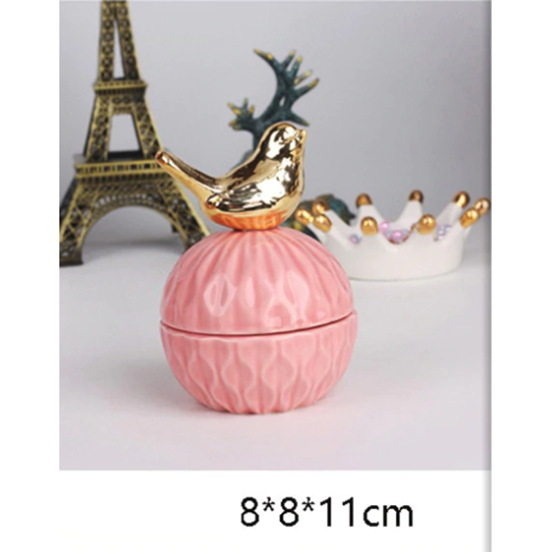 Jewelry Storage Box Organizer for Women Pink Ceramic Dustproof Cover Home Deco Desktop Organization Jewellery Storage Case 7