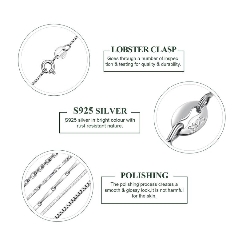 √ HIGH-QUALITY AAA BASIC 925 STERLING SILVER CHAIN NECKLACE: The chain is made of solid S925 sterling silver,known amongst jewelry wearers for its strength, brightness,and shine.Sterling silver in chain necklace is tarnish-resistant, ensuring there is no tarnish residue on the skin. Rhodium plating provides a long-lasting luster and makes anillos de plata 925 women tarnish resistant! Completely hypoallergenic, allergy-free, nickel-free, lead-free, and cadmium free to prevent irritation.